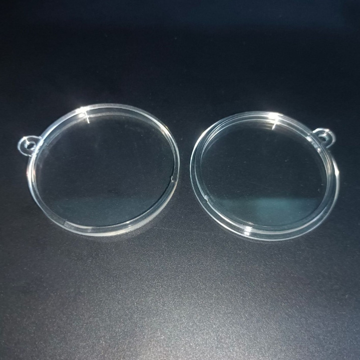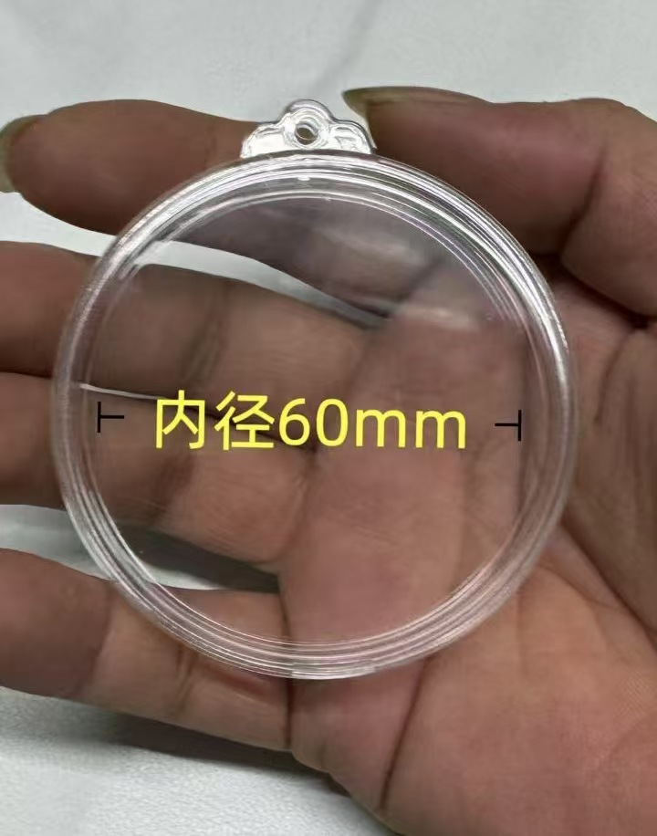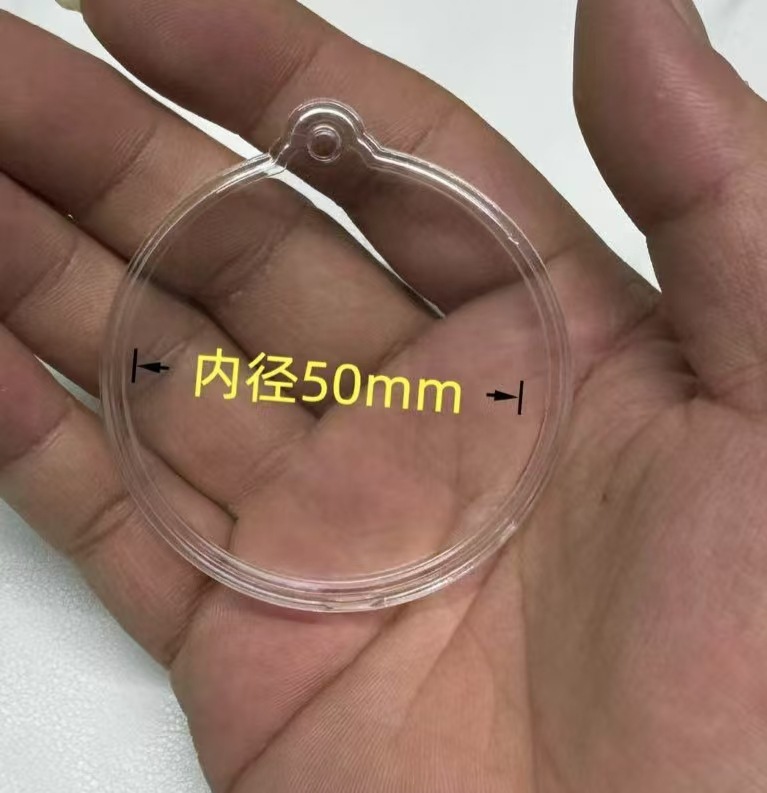 50mm片耳片掛け記念硬貨ボックス、丸型アクリル製、穴付き吊り下げプラスチックボックス、透明な文玩硬貨用