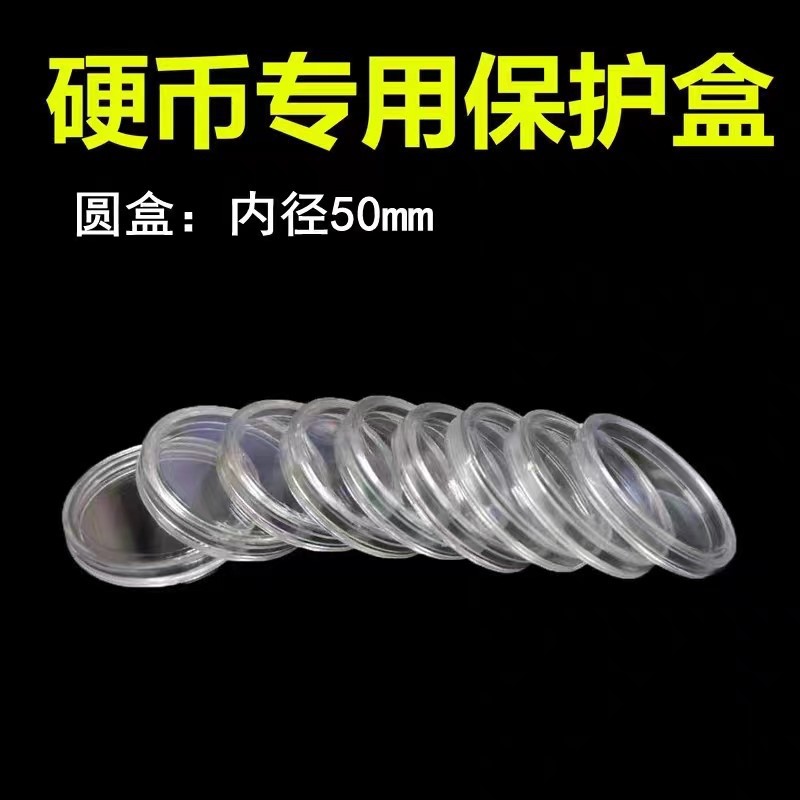50mm硬貨コレクションボックス、硬貨保護ケース、銀貨、古銭、透明丸型ボックス、記念硬貨、骨董品、透明、損傷防止