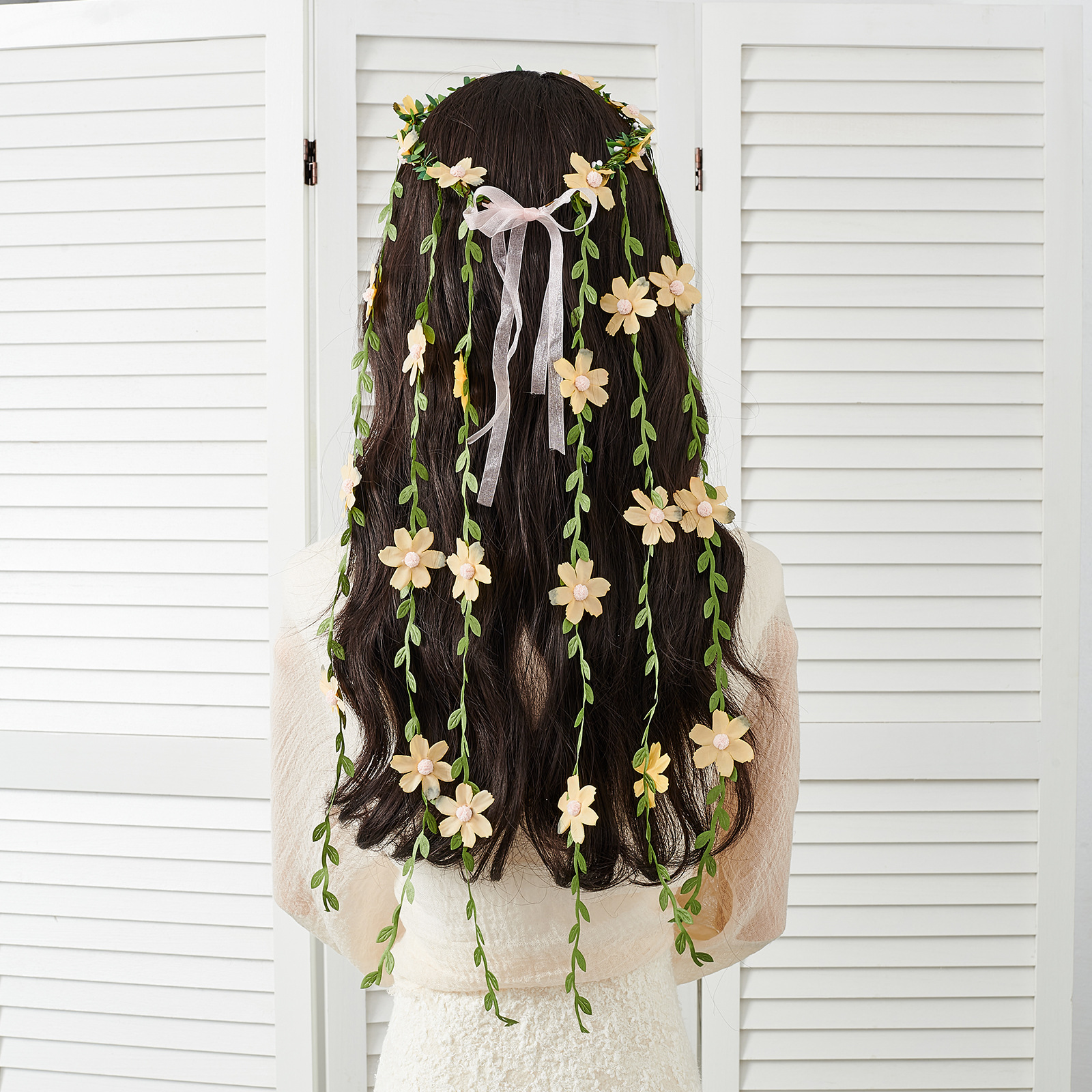 花輪ヘッドドレス、森ガール風、造花、つる状の編み込みヘアフープ、旅行、結婚式、ヘッドフラワー、パフォーマンス、写真撮影、手作り