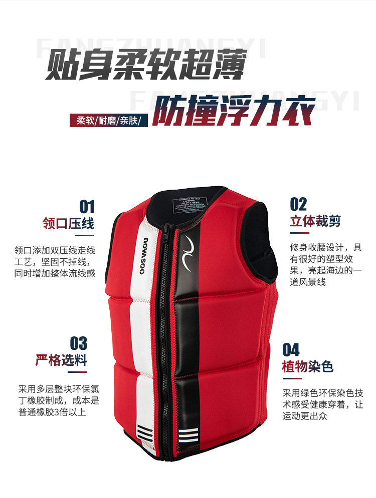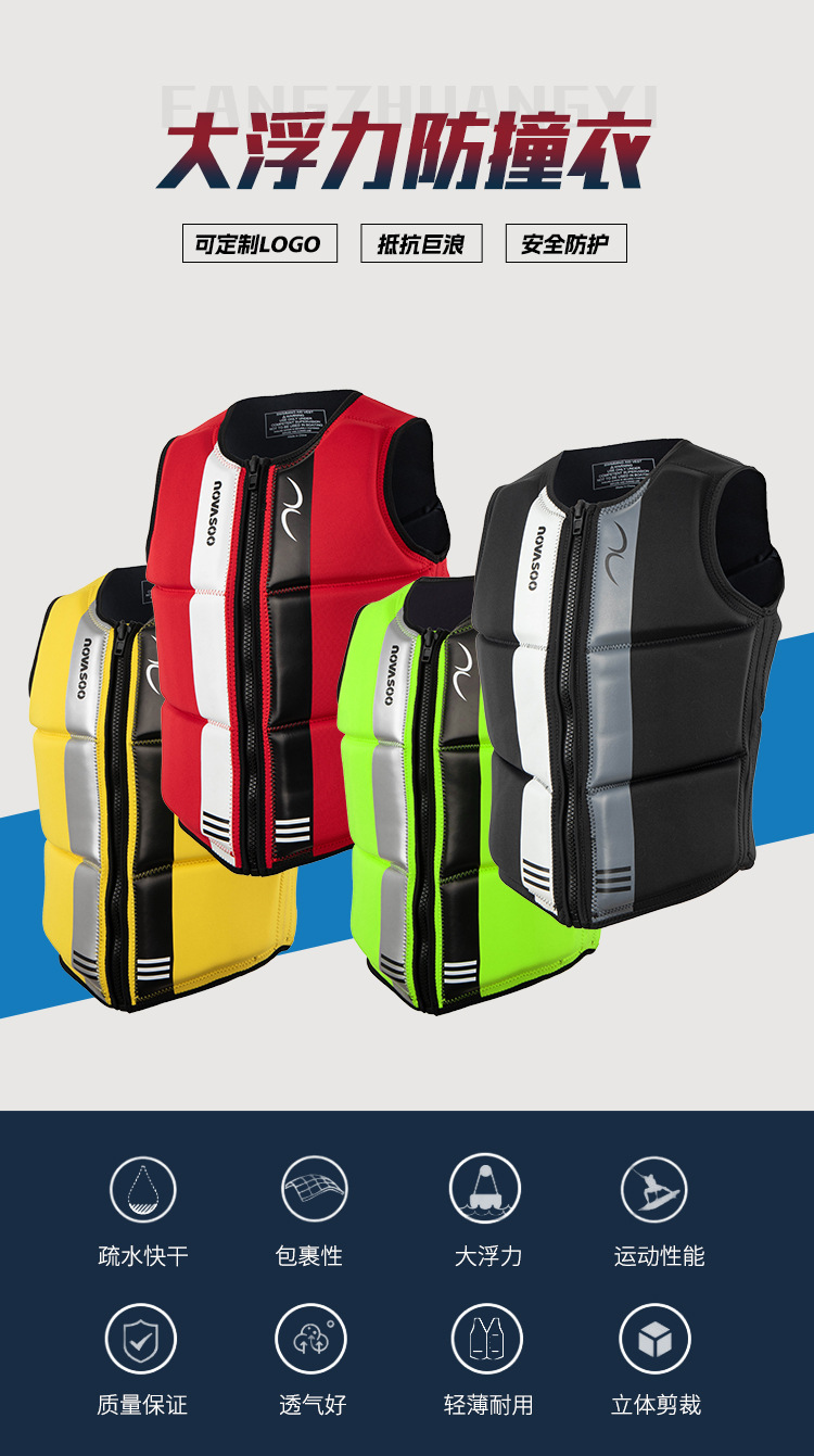 新しいスタイルのウィンドサーフィン衝突防止ジャケット、モーターボート、セーリング、ウェーディングスポーツ浮力ベスト、衝突防止ベスト、ライフジャケット