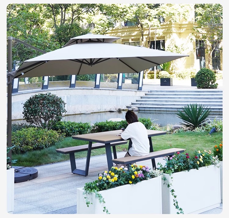 屋外用アルミ合金プラスチック木製テーブルと椅子、中庭、バルコニー、屋外用レジャーチェア、ガーデンセット、大量購入、越境輸出