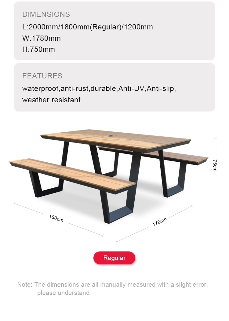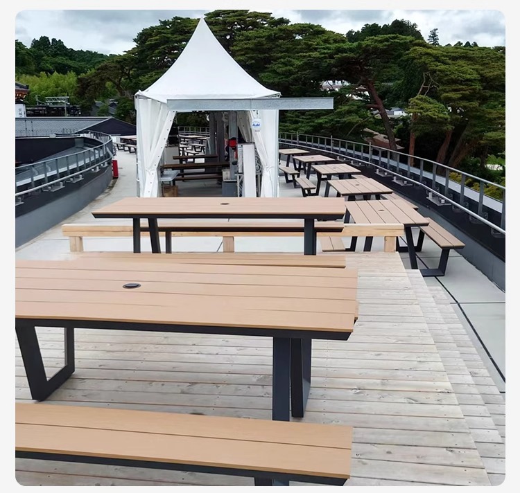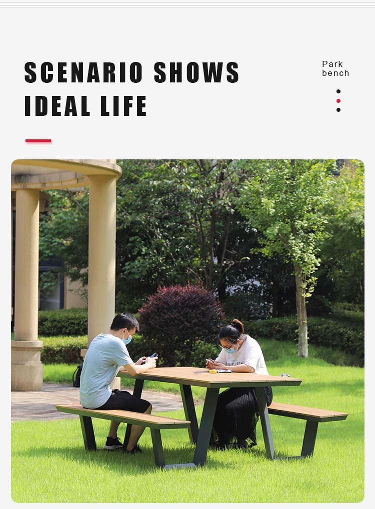 屋外一体型テーブルと椅子、中庭の屋外プラスチック木製屋外ガーデンレジャーパークチェアの組み合わせ、防水性と日焼け防止家具