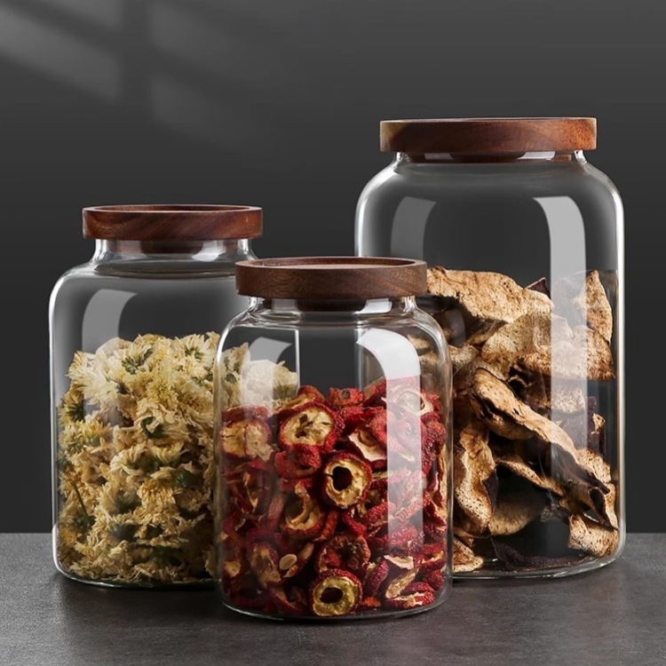 卸売り中国式アカシア木蓋高ホウ素シリコンガラス防塵密封缶食品香料コーヒー防湿収納缶
