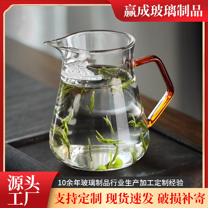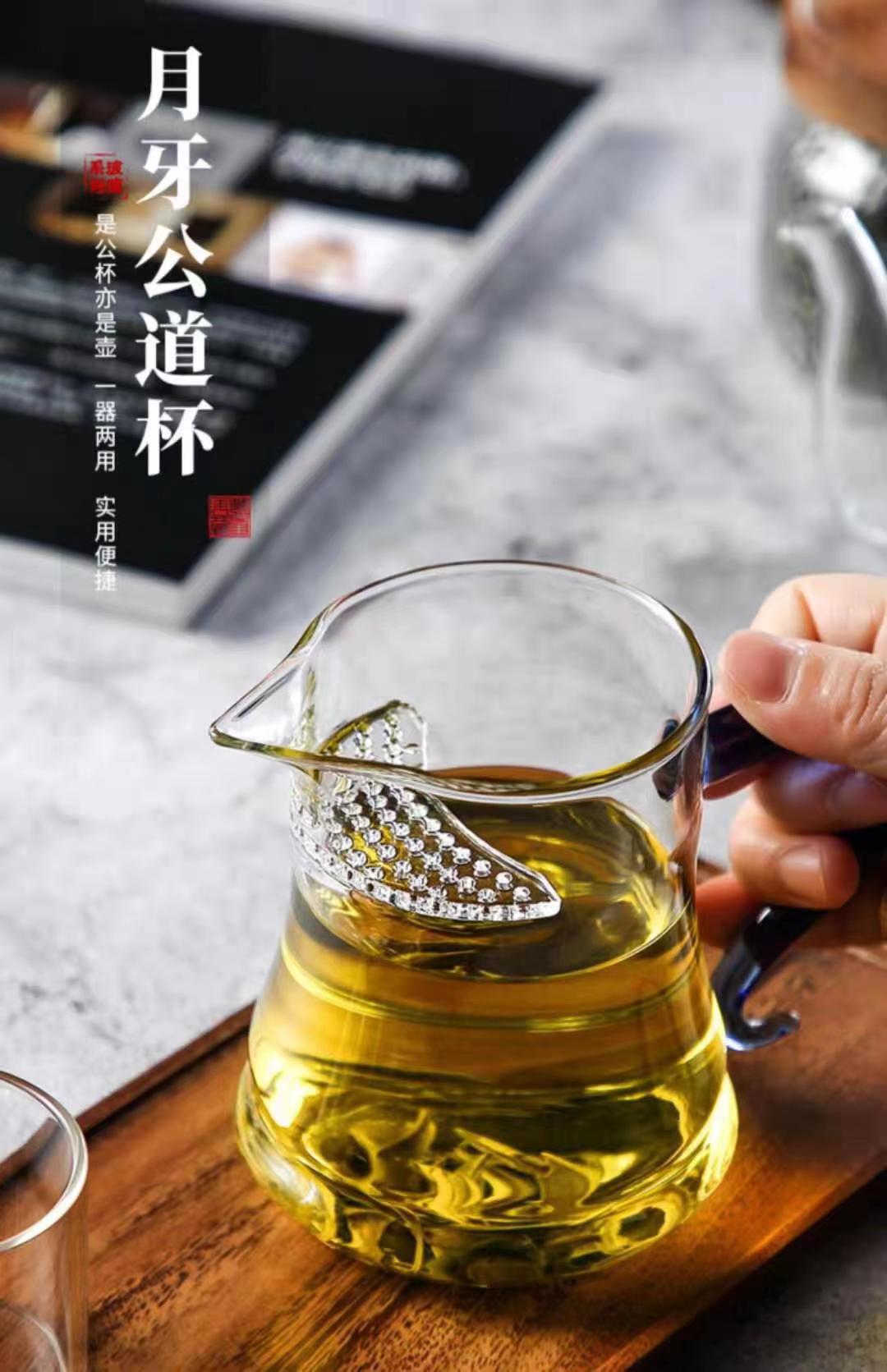 新型カラーガラス月牙型公道杯一体型茶こし付き茶分杯高硼珪酸ガラスフィルター付きシンプル茶器
