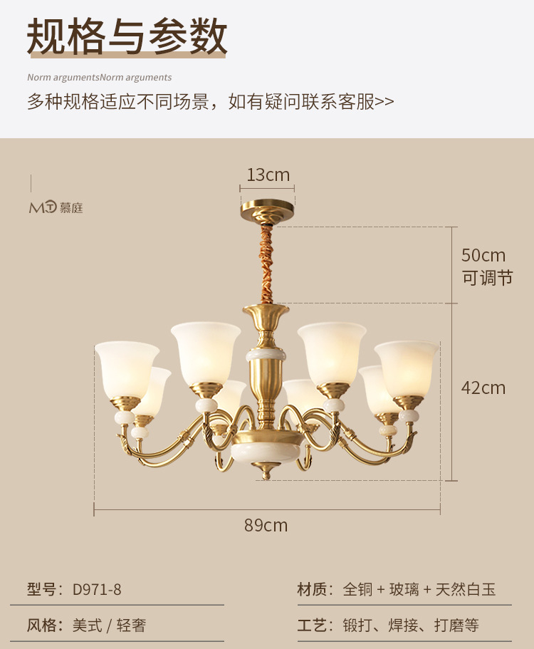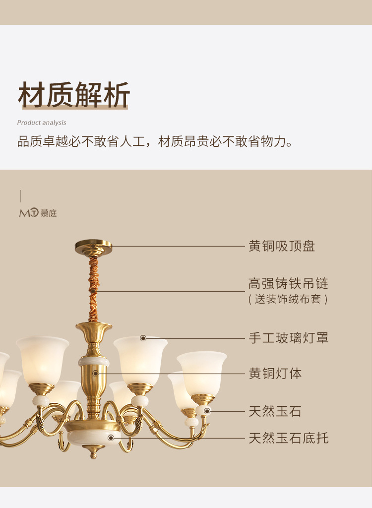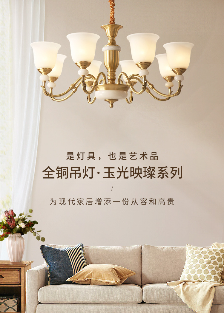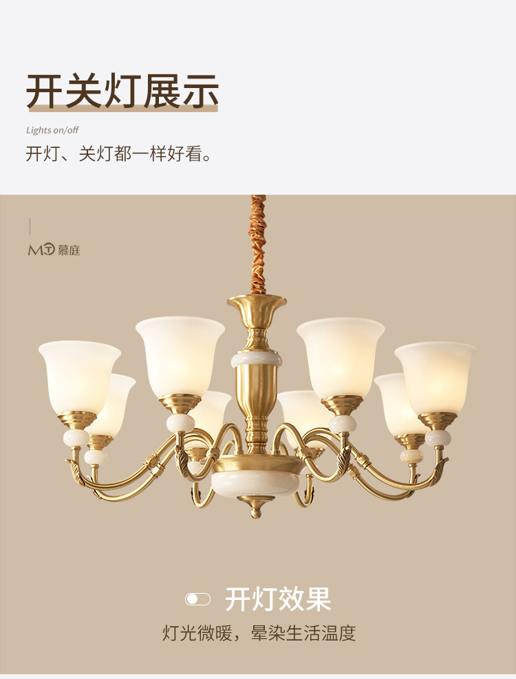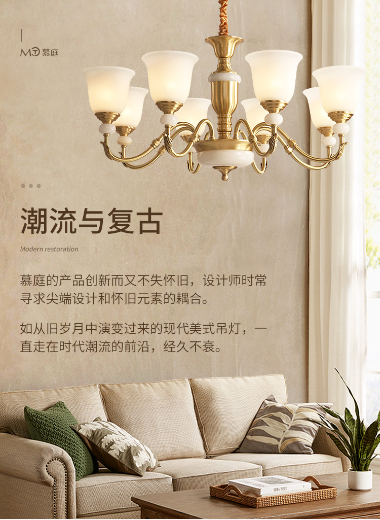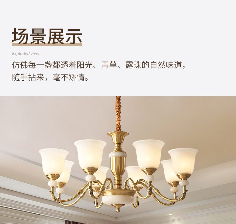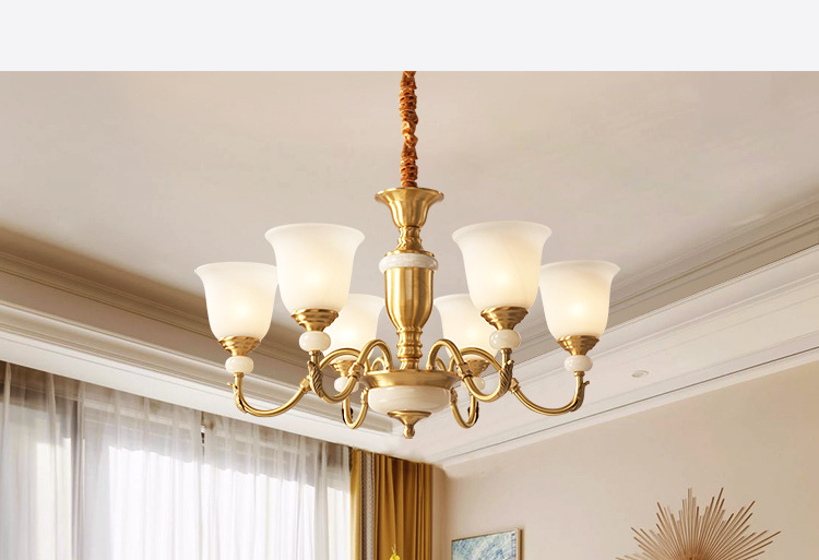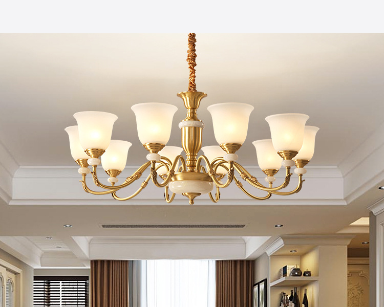 アメリカンオール銅シャンデリアリビングルームライトメインライトシンプルモダンレトロ中世クリームスタイルレストランベッドルームライト66650