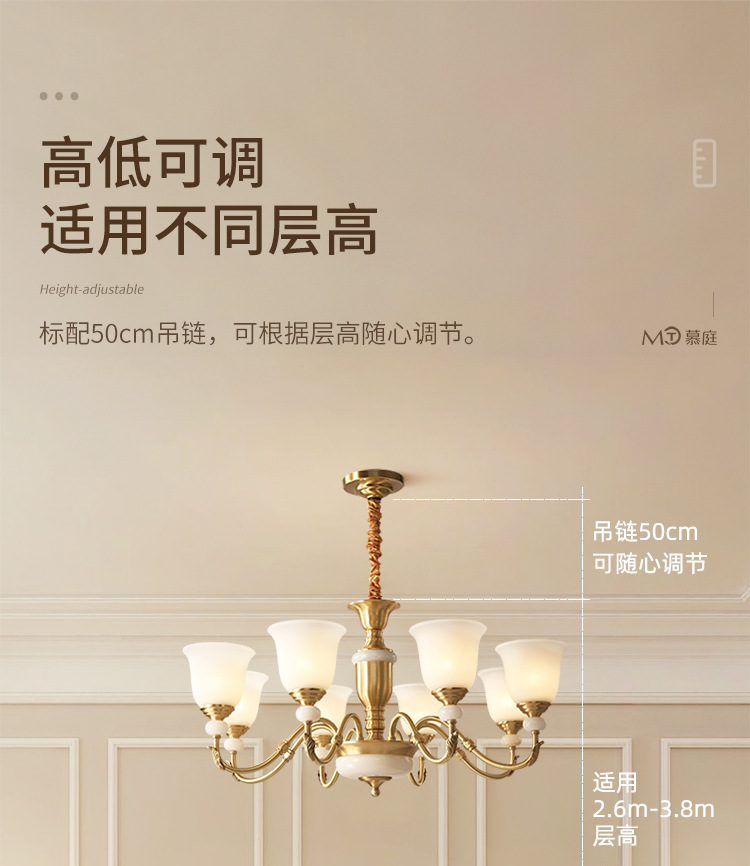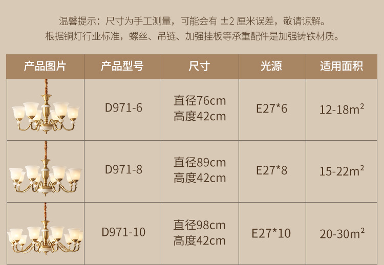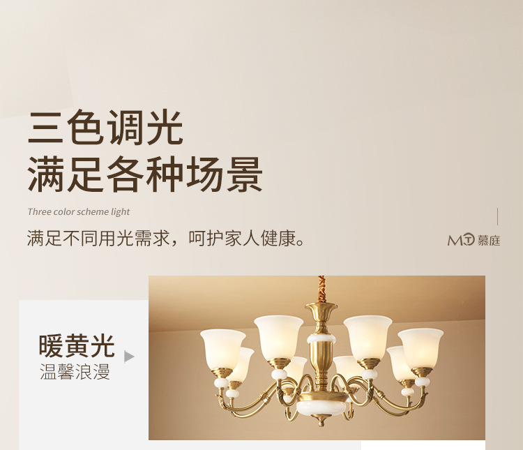 ライトの色 総銅製6頭シャンデリア(12-18に適した3色調光)㎡),総銅製8頭シャンデリア(15~22に適した3色調光)㎡),総銅製10頭シャンデリア(20~30歳向けの3色照明)㎡)