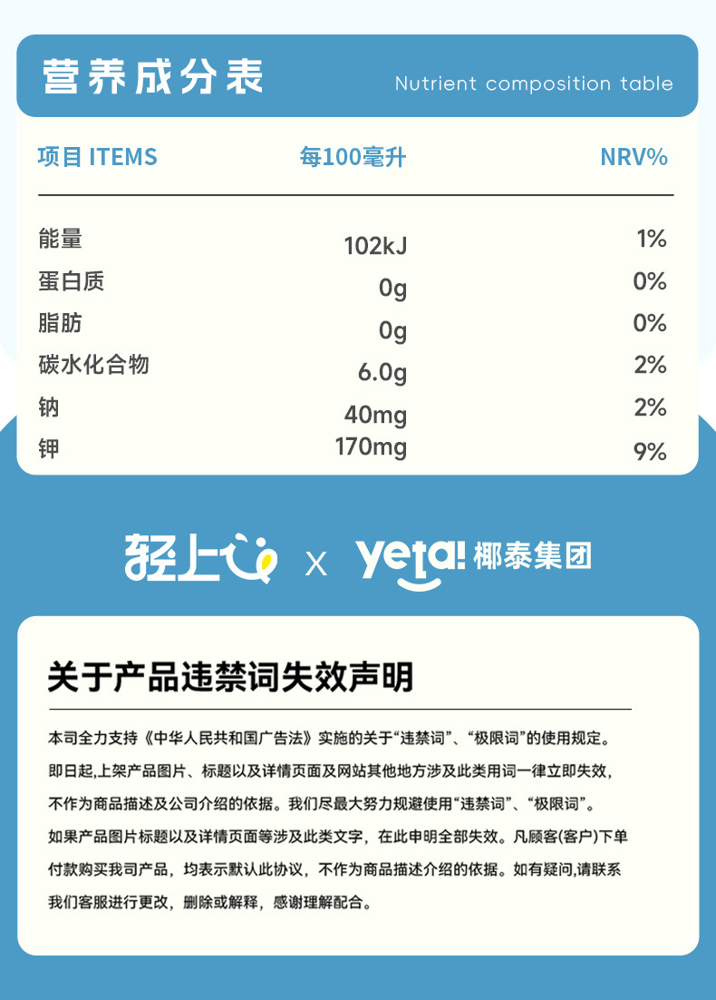 轻上100%椰子水0脂肪NFC椰汁水电解质纯椰青水孕妇儿童饮料整箱