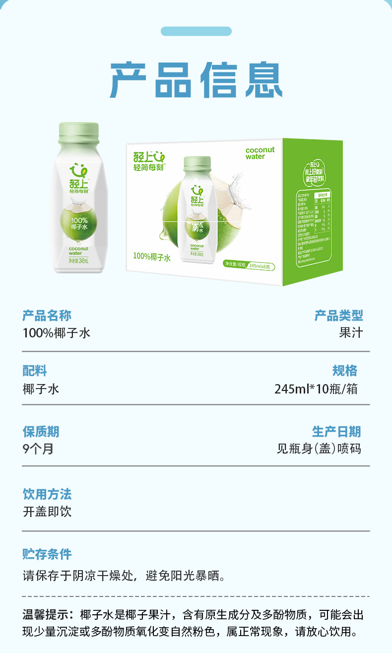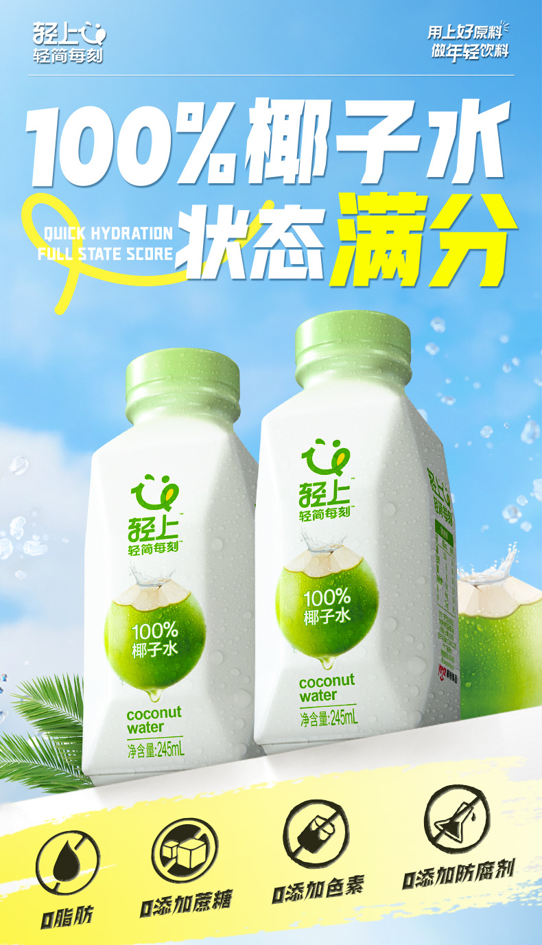 轻上 245ml100%椰子水0添加健康饮料【含天然电解质】245ml瓶装