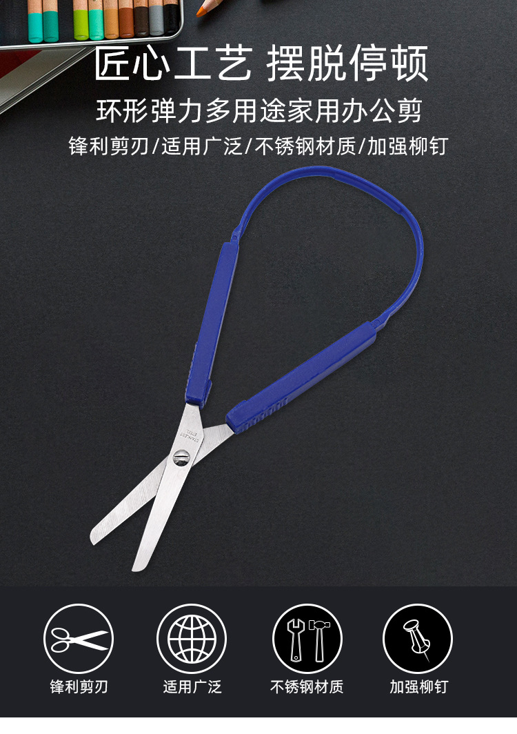 メーカー卸売ホームオフィスはさみクリエイティブリング弾性オフィスはさみ多目的ステンレス鋼アートはさみ