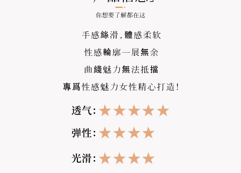 【柔情】超薄ビロードのシルクがシームレスで、ハイウエストの美脚が形をなしています。