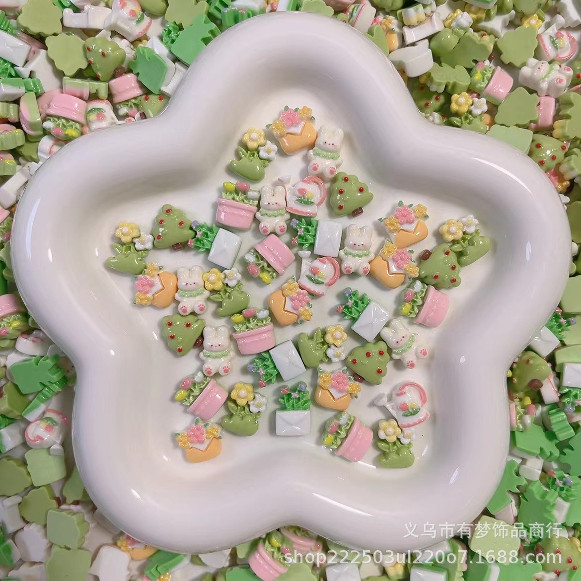 亮面迷你清新小兔子花朵diy奶油手机壳树脂饰品配件手工发夹可爱