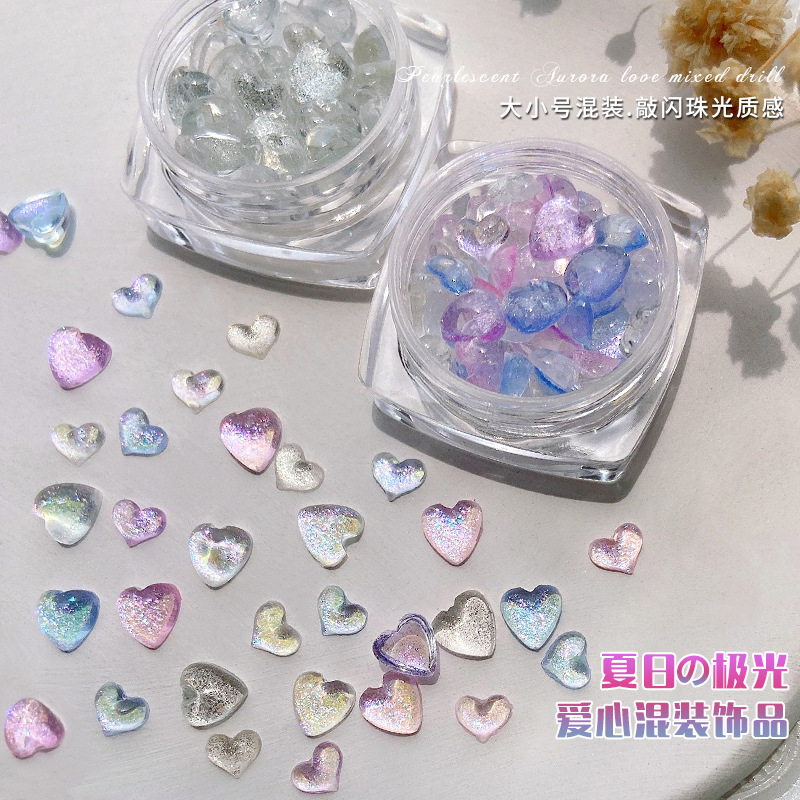 4x5mm オーロラ透明ミニハートDIYネイルデコレーション 超キラキラ氷透幻彩氷透平底ネイルストーン