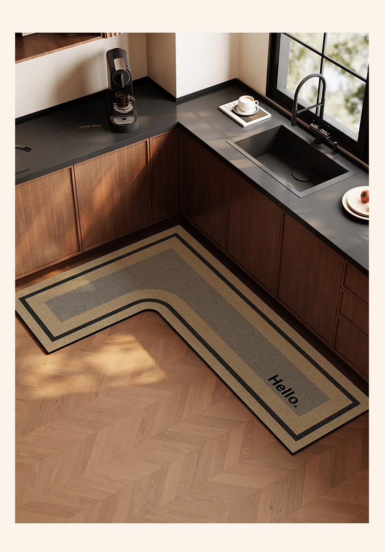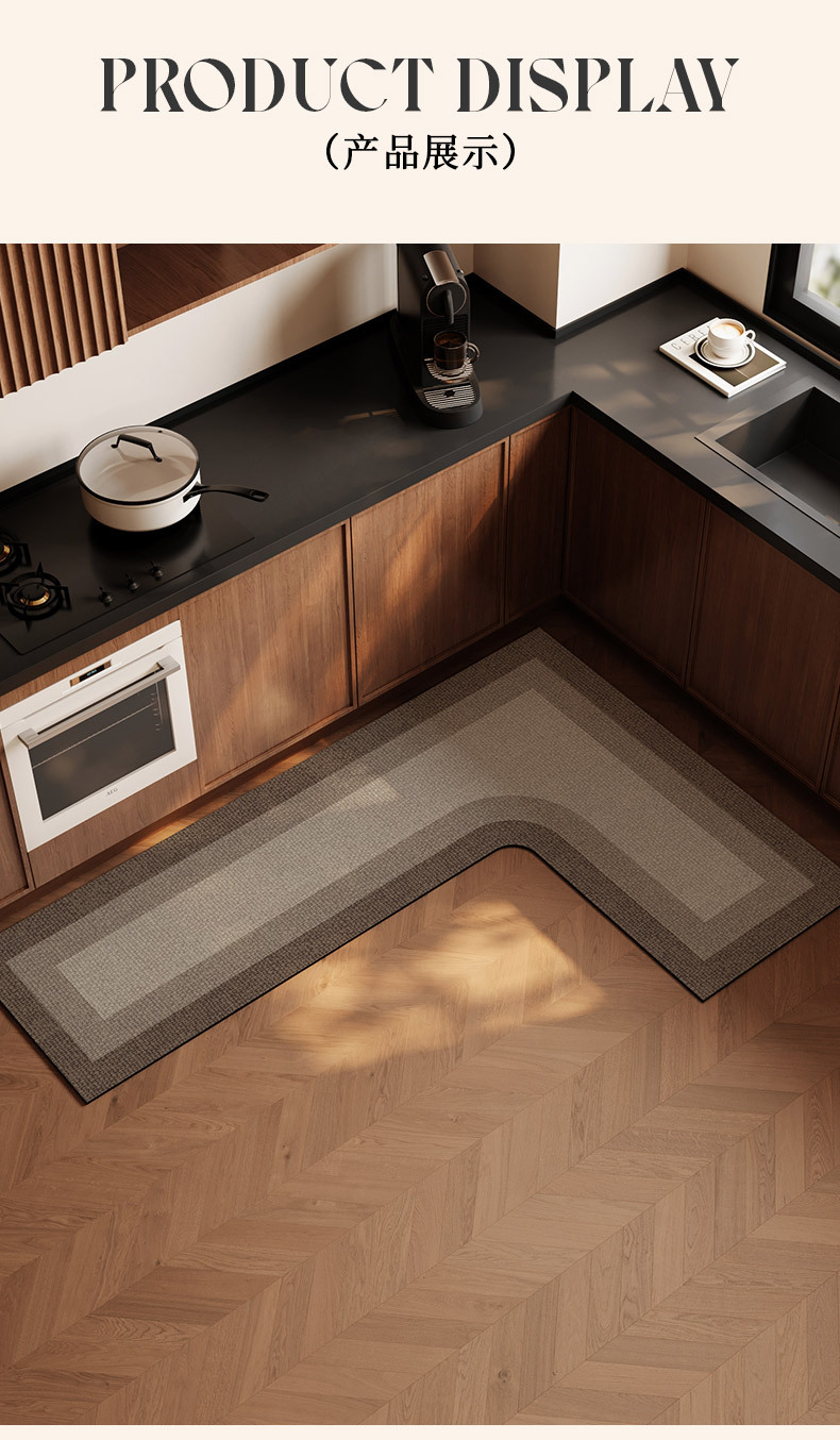 2025新型キッチンフロアマットl字型一体吸水吸油滑り止め家庭用モダンシンプル7字形カーペット