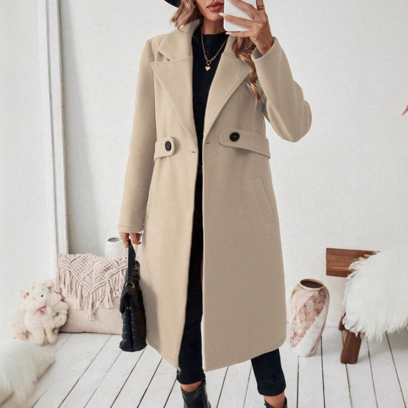 2025欧美跨境秋冬季亚马逊独立站爆款毛呢大衣翻领双排扣大衣外套