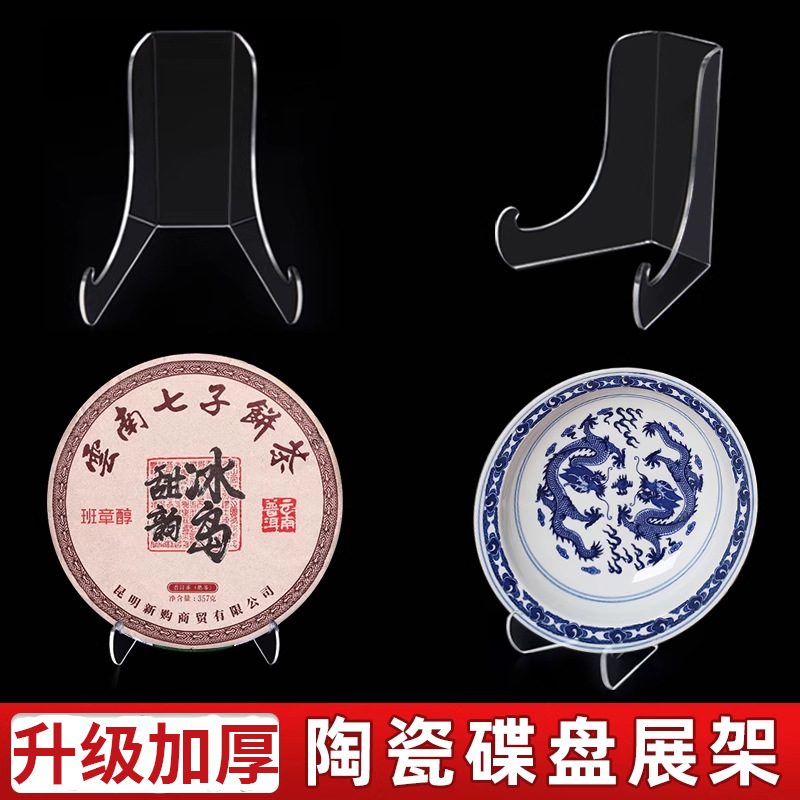 透明亚克力茶饼展示架圆盘展架书架盘子支架陶瓷碟子展示托架底座