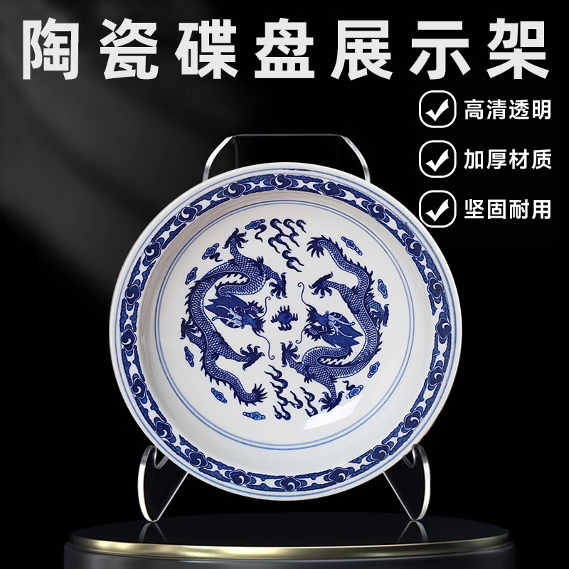 亚克力装饰盘圆盘子支架博物馆古董盘架托相框茶饼展示架透明托架