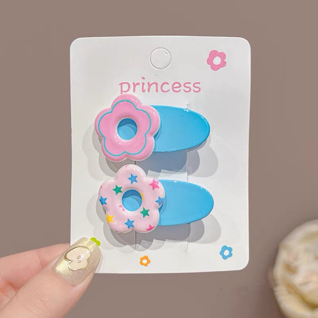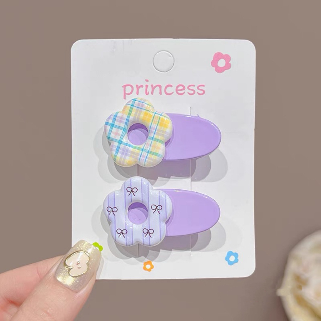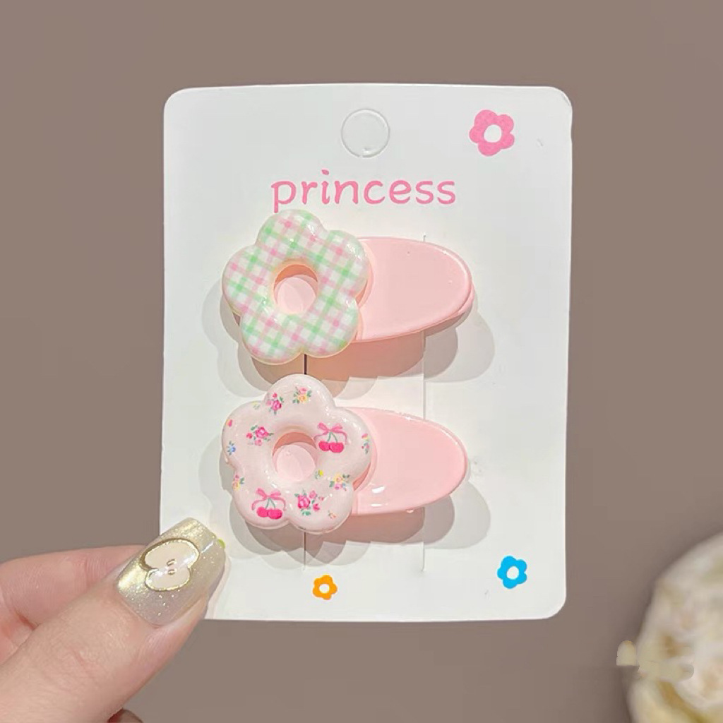 キャンディーカラーの花柄チェック柄フラワーヘアピンカモノハシクリップオーバルヘアピンブロークンヘア前髪クリップサイドクリップ少女ヘアアクセサリー