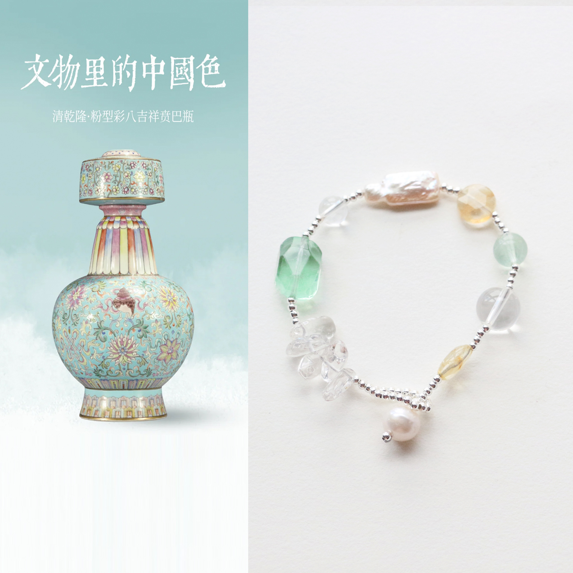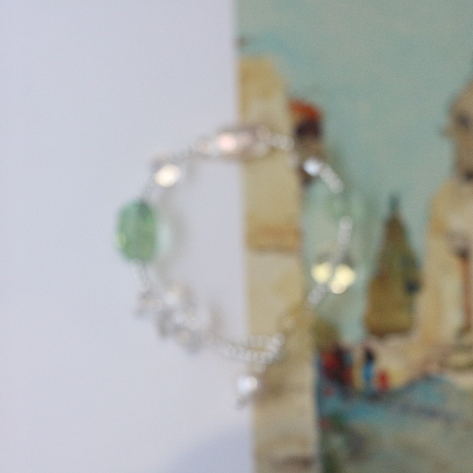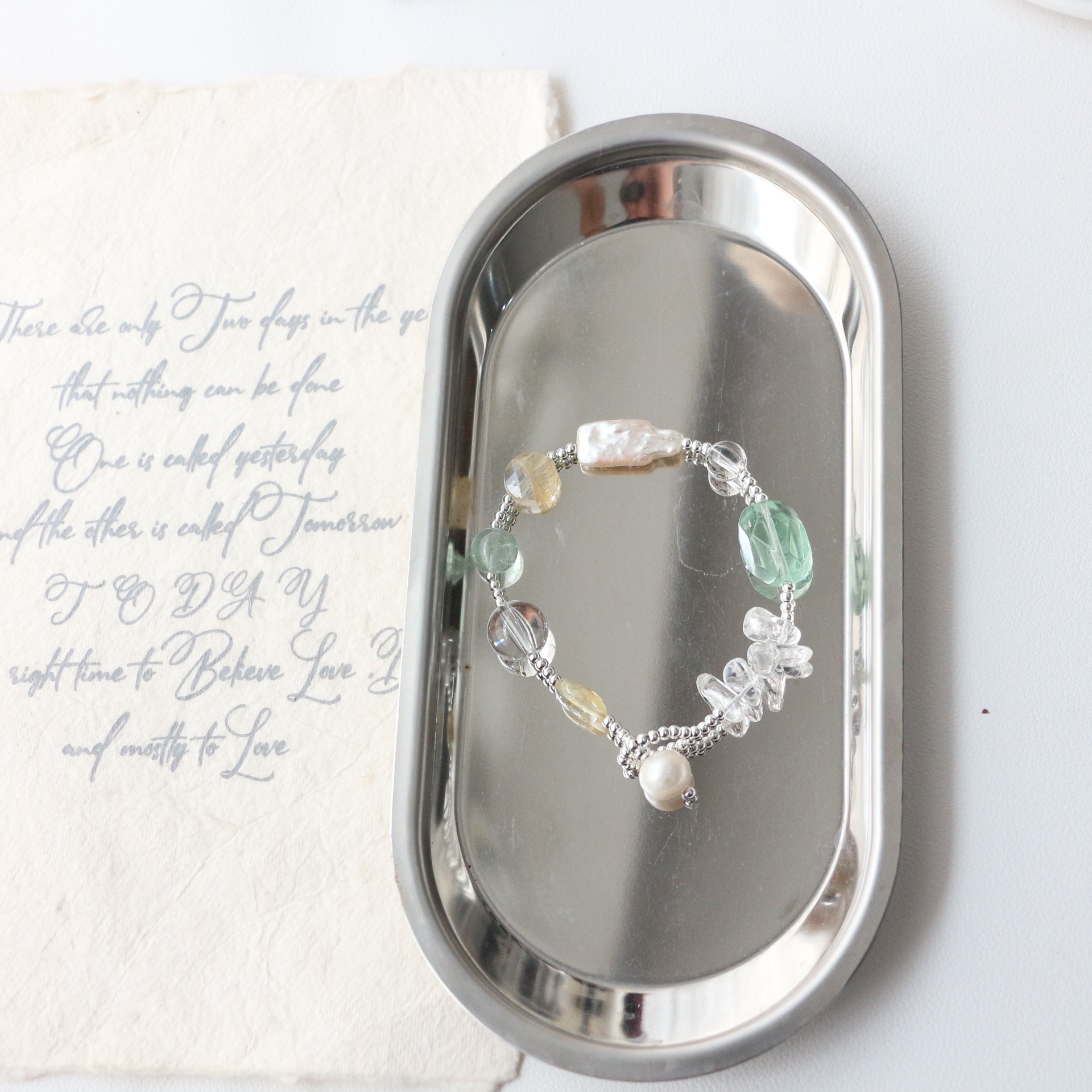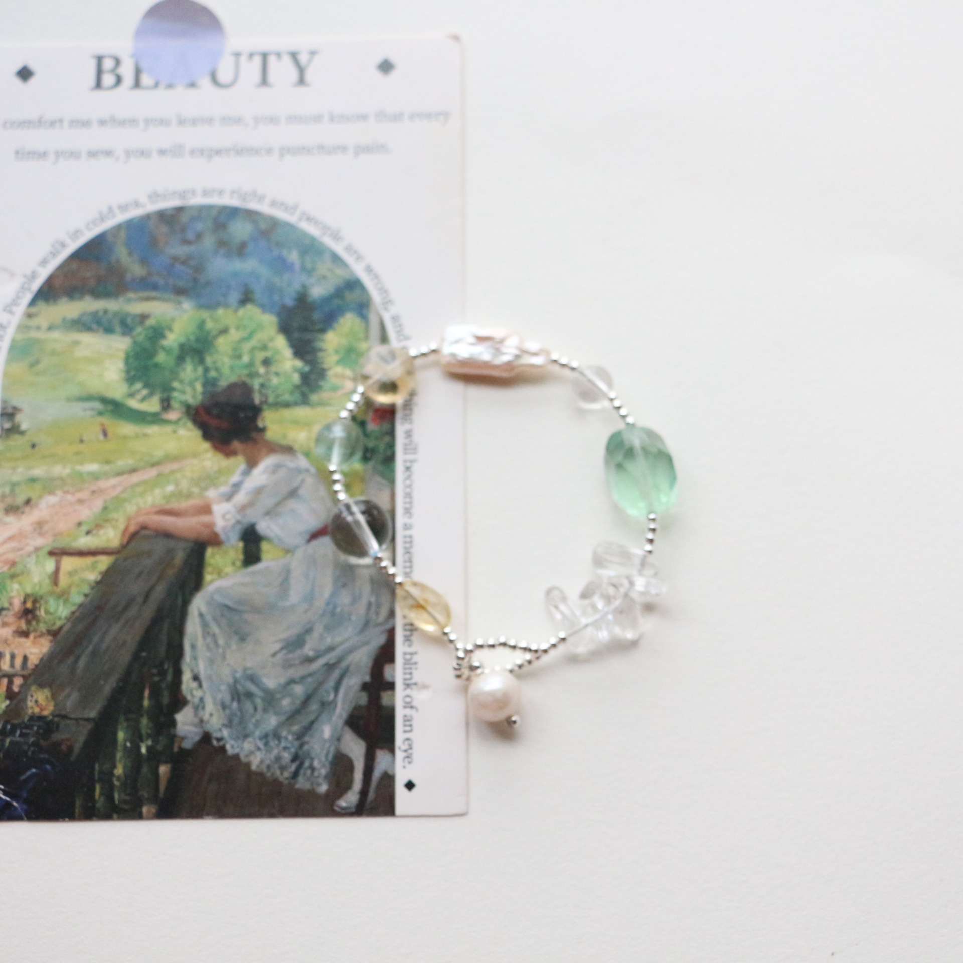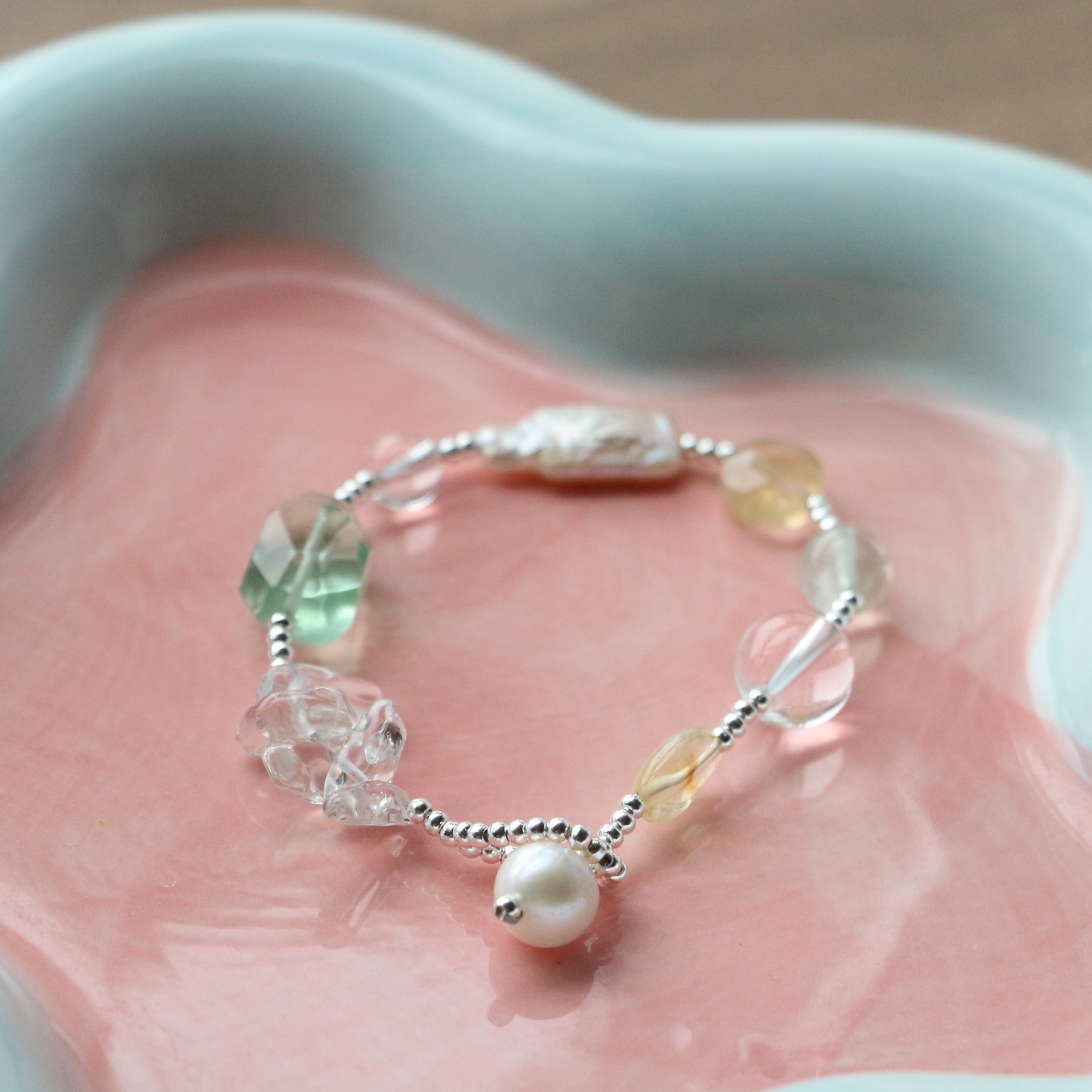 オリジナルデザイン グリーン蛍石 ピュアホワイトクリスタル バロックパール ブレスレット