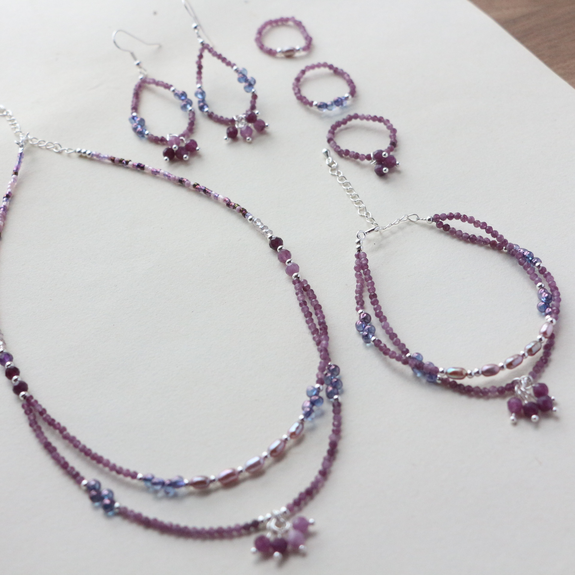 夏日多巴胺胡桃紫淡水珍珠吊坠锁骨链ins高级感小众耳环截止套系