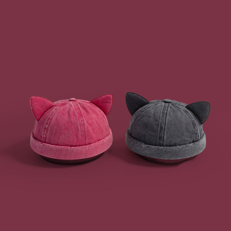 かわいい猫耳ビーニー帽子、男性と女性のための外国貿易地主帽子、多用途メロンスキン帽子、洗濯済みの古いヤッピーハット卸売