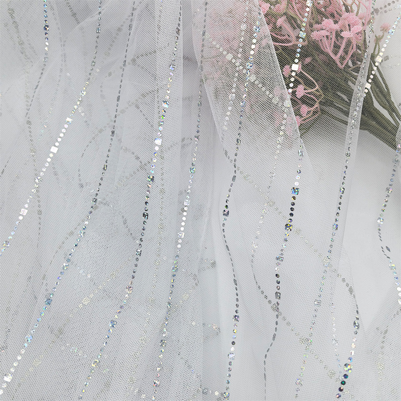 现货烫银流星锦纶网眼布婚庆服饰纱裙网纱面料diy伴手礼装饰材料