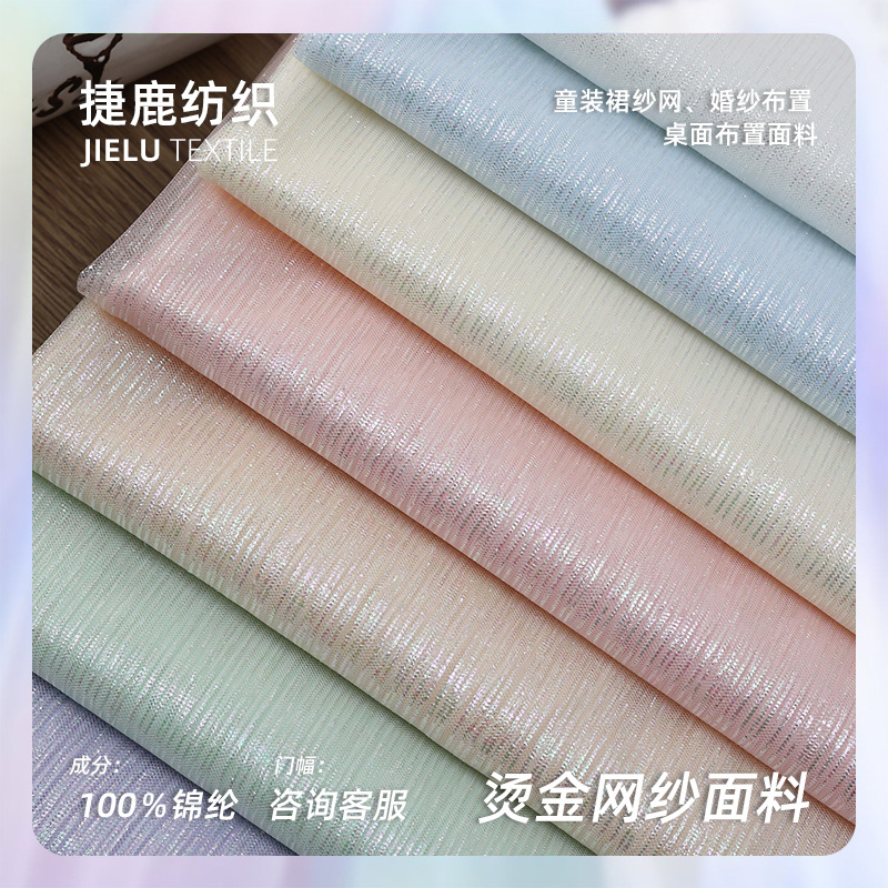 烫金幻彩条彩色网纱渐变金条纹 手工DIY公主裙装饰品连衣裙面料