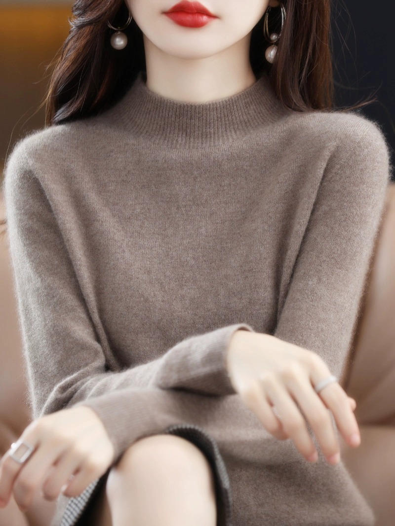 【中】半高领衫女加厚打底毛衣套头百搭羊毛针织衫秋冬款