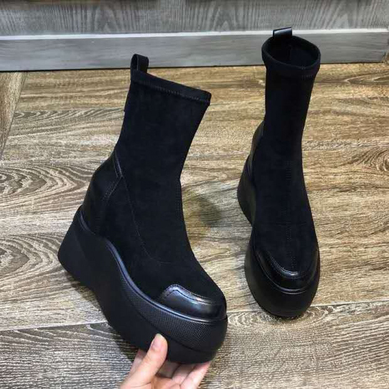 2025欧洲站春冬新款松糕厚底短靴增高弹力靴马丁靴雪地靴女靴子潮
