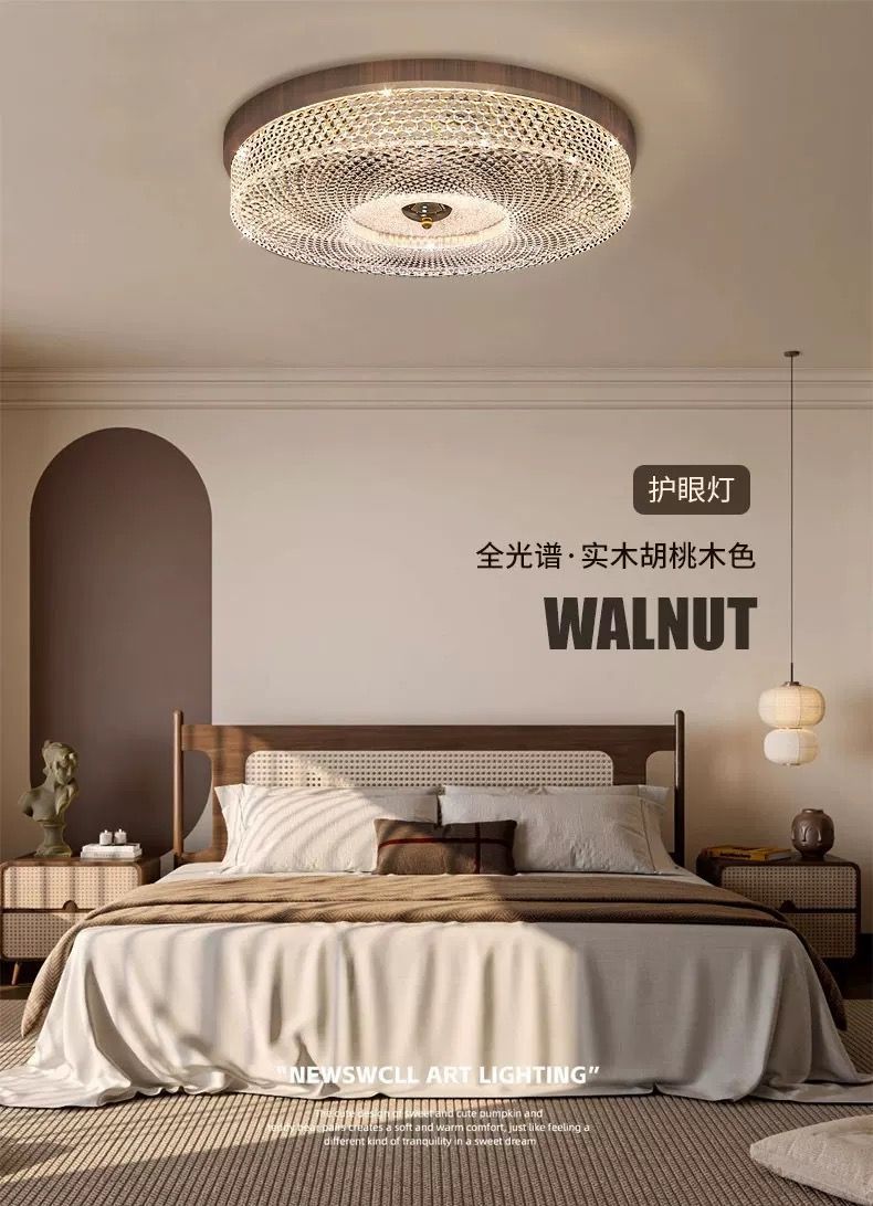 中世スタイルの寝室のシーリングランプアメリカンレトロなわび寂しいスタイルのウォールナットカラーマスターベッドルームルームランプ中山照明