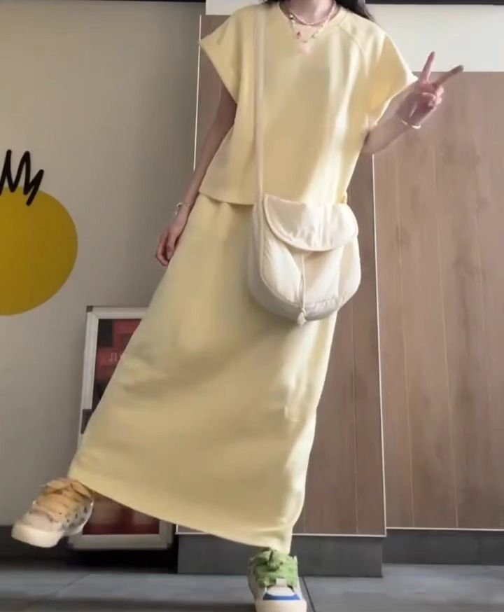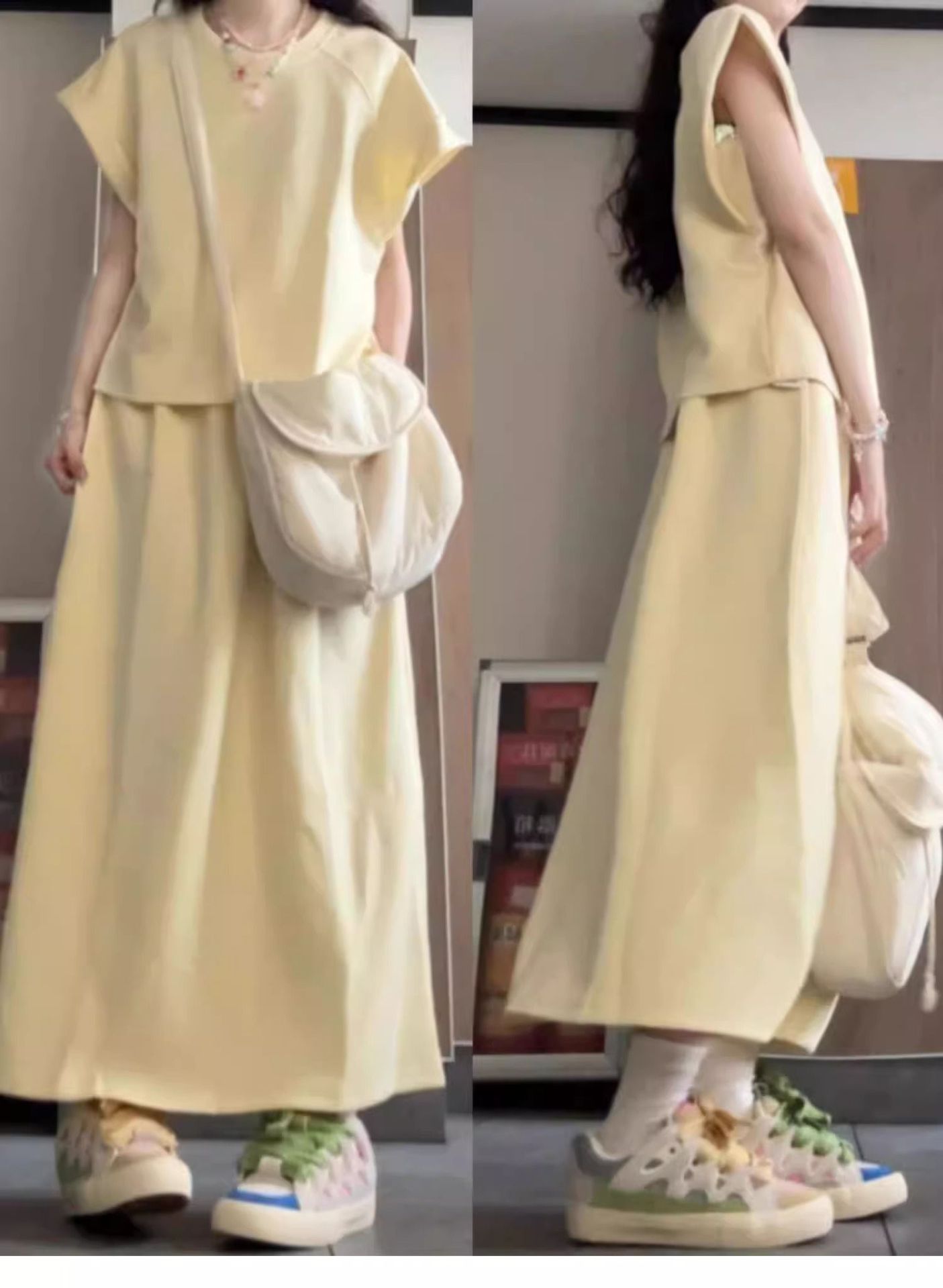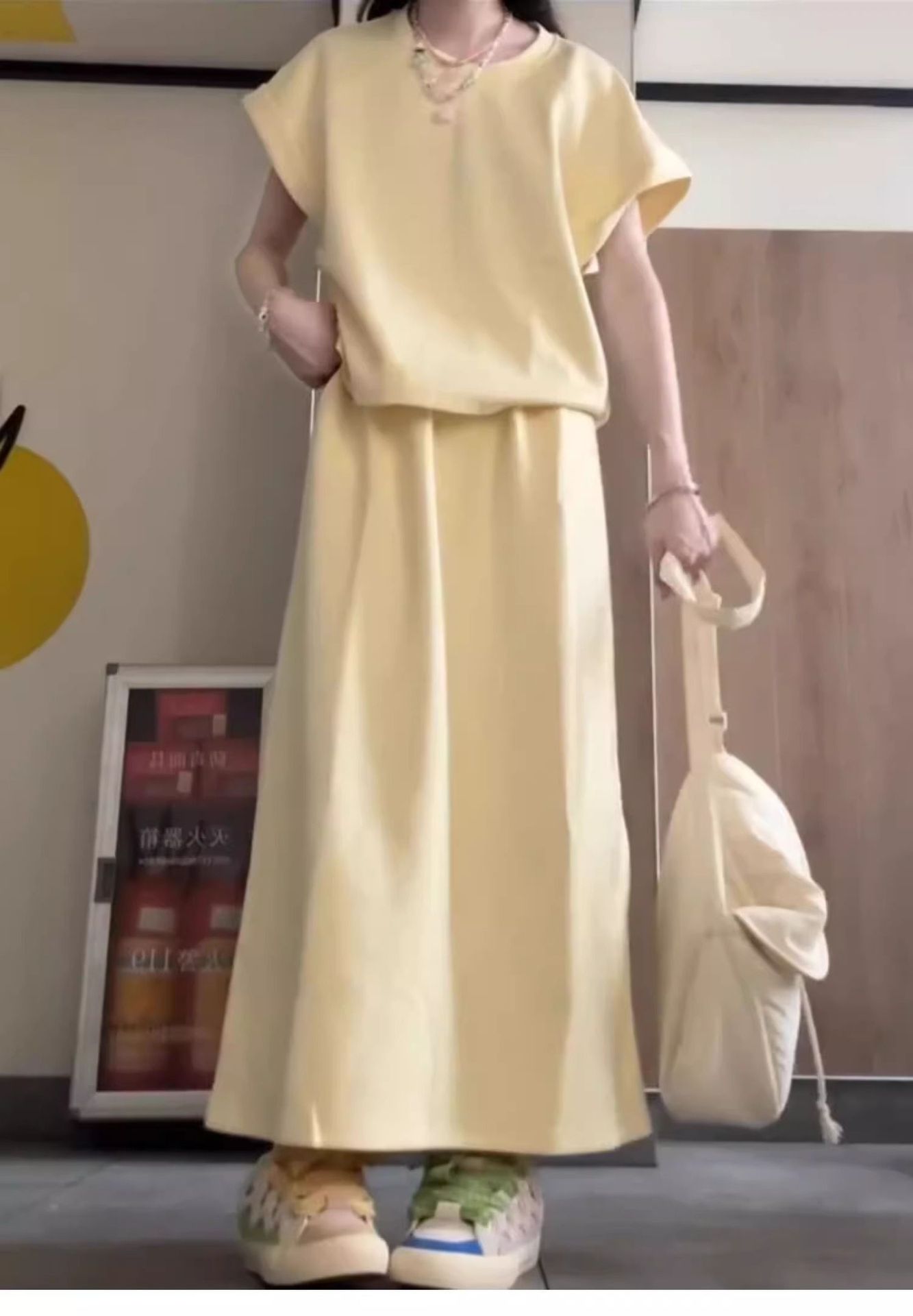 カジュアルスポーツウェアレディーススーツ夏韓国風甘いルーズ半袖ミドル丈スカート女の子年齢軽減ツーピーストレンドセット