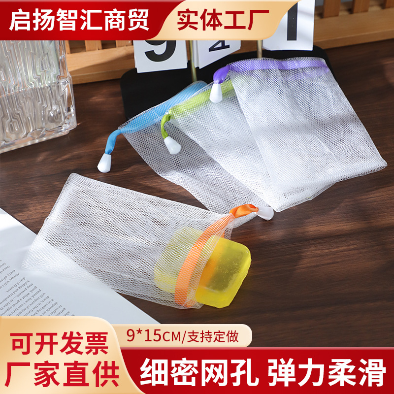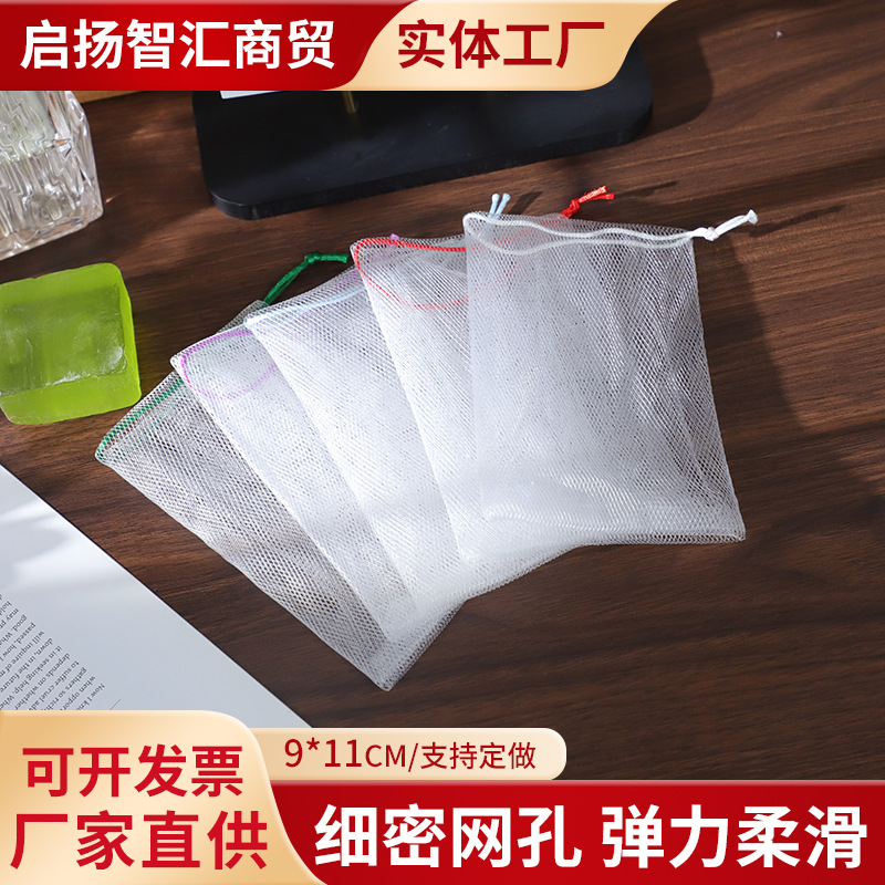 発泡ネット卸売手作り香り石鹸クレンジング洗顔料発泡ネットカラーリボン和風収納発泡ネットバッグ