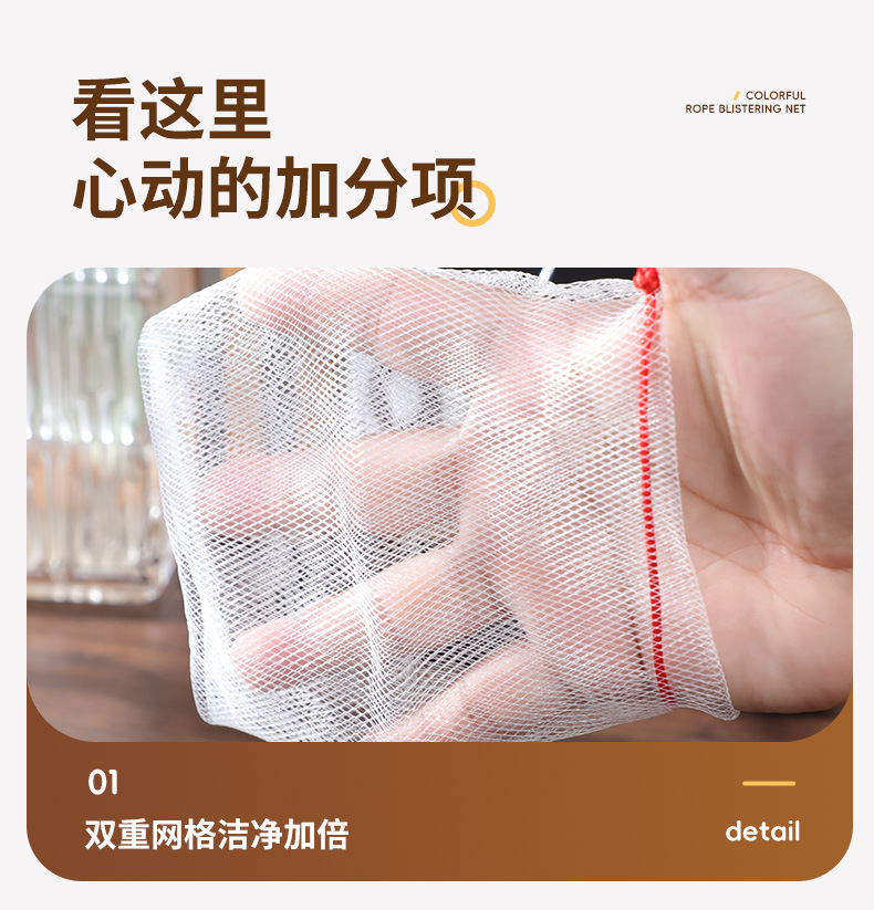 発泡ネット、洗顔料専用手作り石鹸、クレンジングネット、石鹸袋、発泡ネット、卸売二層増粘