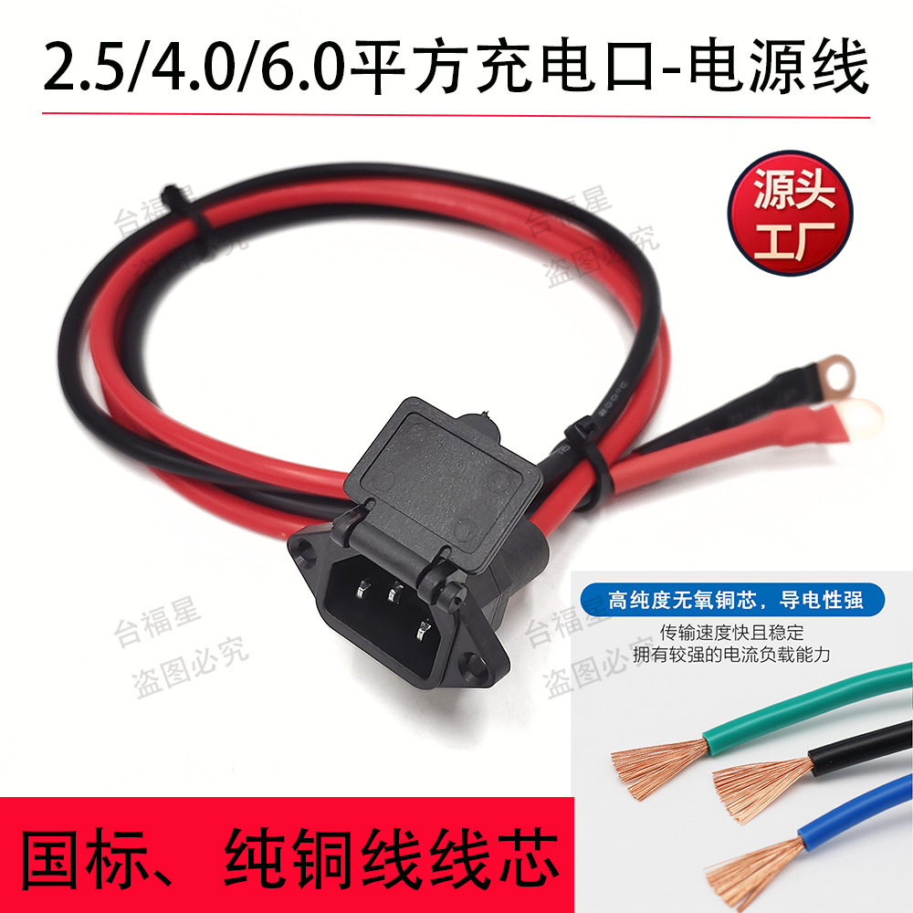 纯铜线2.5-4.0-6平方品字充电口尾部铜鼻/ 电动车带盖品字母座插