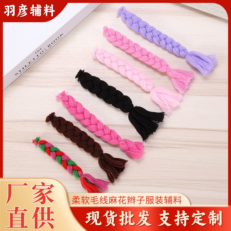 毛糸三つ編み、三つ編み、衣類、帽子素材、ぬいぐるみ、ヘアアクセサリー、ヘアおもちゃ、三つ編みヘアアクセサリー