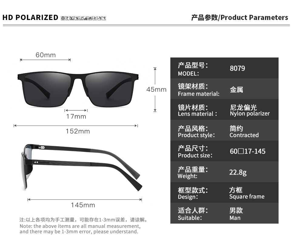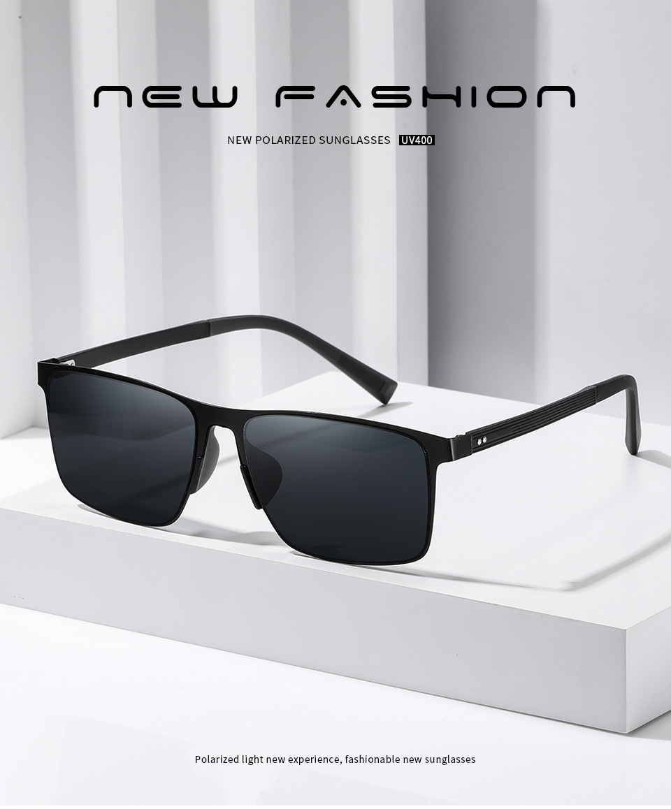 8079 ナイロン偏光サングラスメンズメタルフレームトレンドスクエアサングラスファッションドライビングサングラス