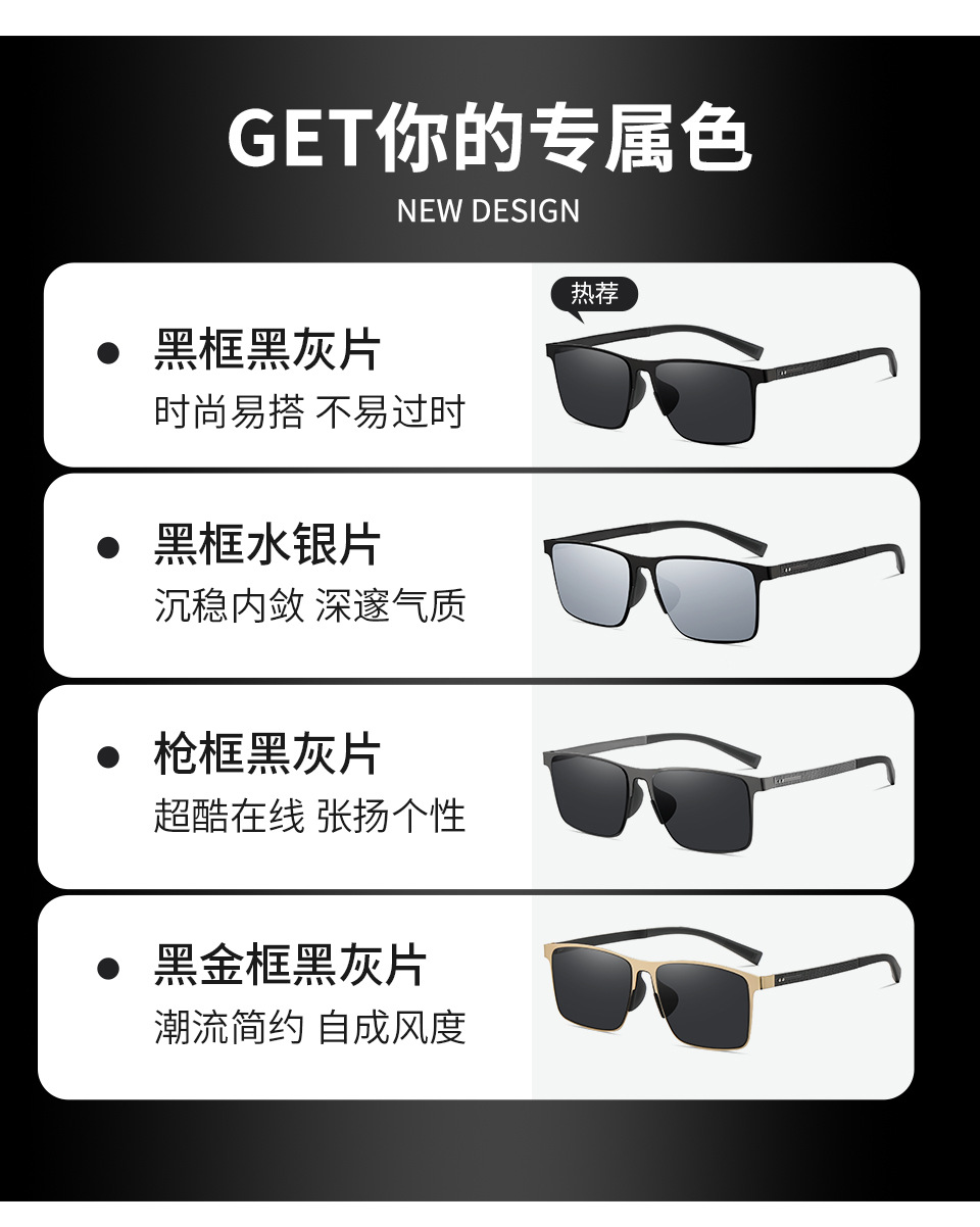 新型欧米国境を越えた男性偏光サングラス運転屋外紫外線防止ファッション角型大枠サングラス