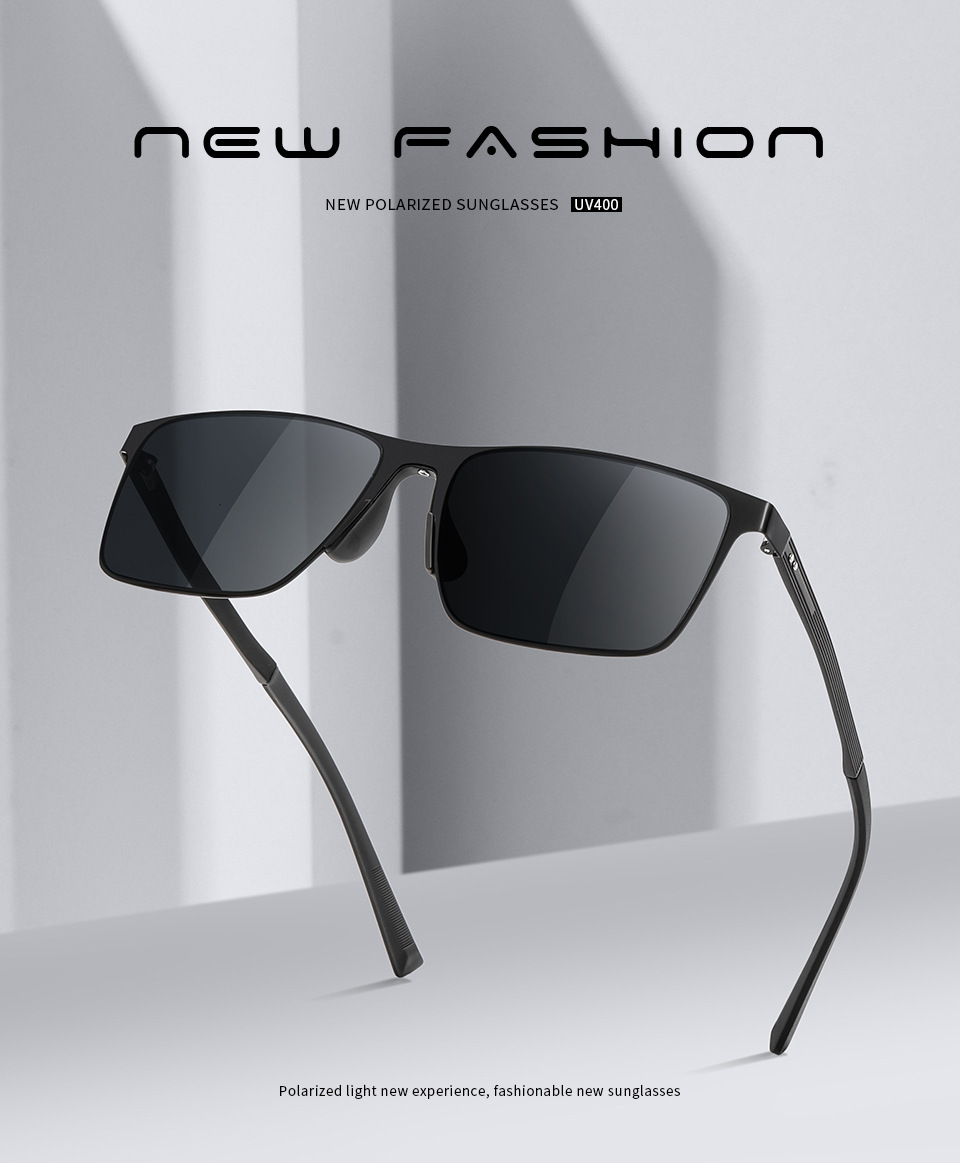 高精細ナイロン偏光サングラス男性紫外線防止角型ステンレス震え音クロスボーダー生放送スポット8245