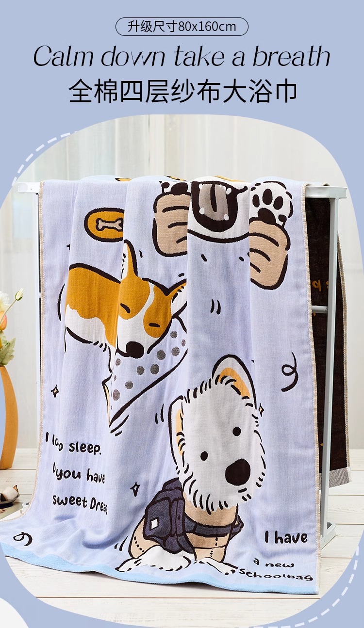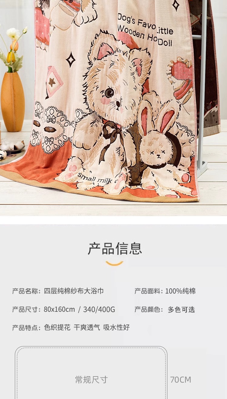 ジャングルプリンセス 4層バスタオル,パーティードッグ 4層バスタオル,かわいい犬の4層バスタオル,タッセルラブウサギ 4層バスタオル