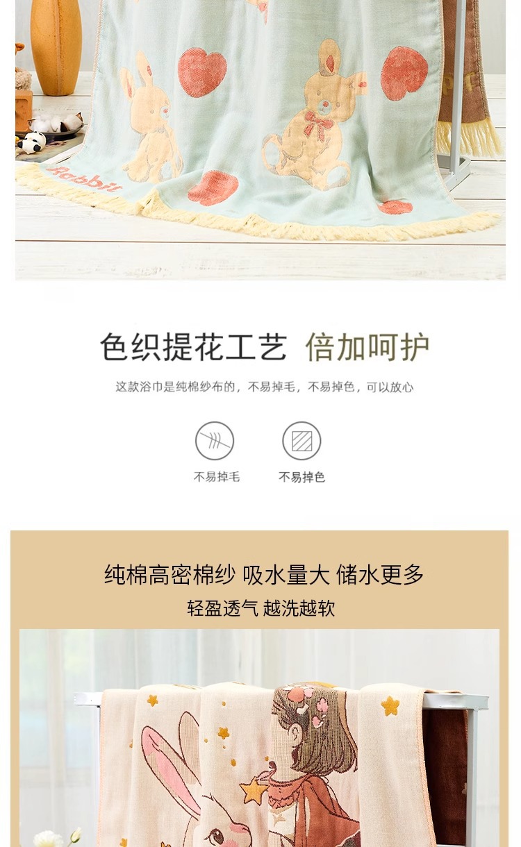 卡通纯棉纱布浴巾成人儿童柔软吸水不掉毛裹巾家用全棉洗澡大毛巾