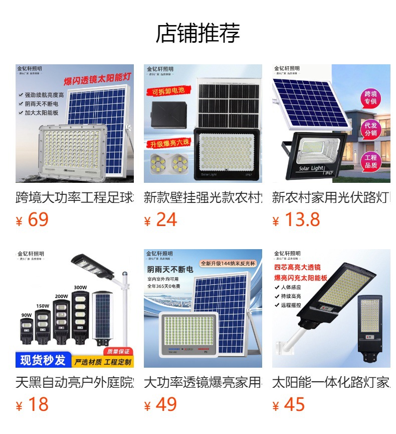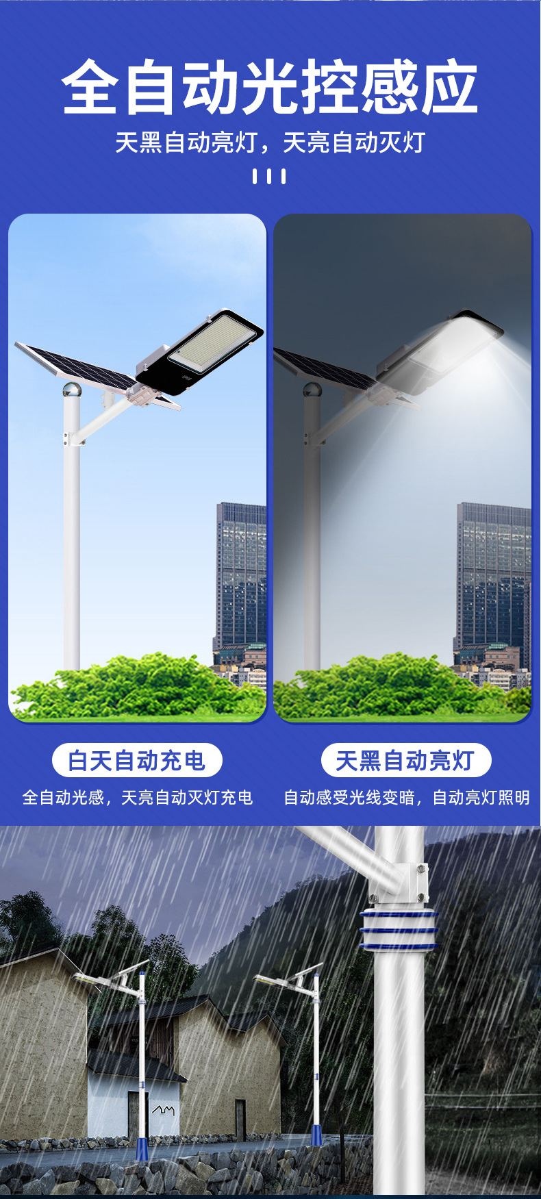 led太阳能路灯户外照明灯家用灯户外全自动超亮防水农村庭院挂灯