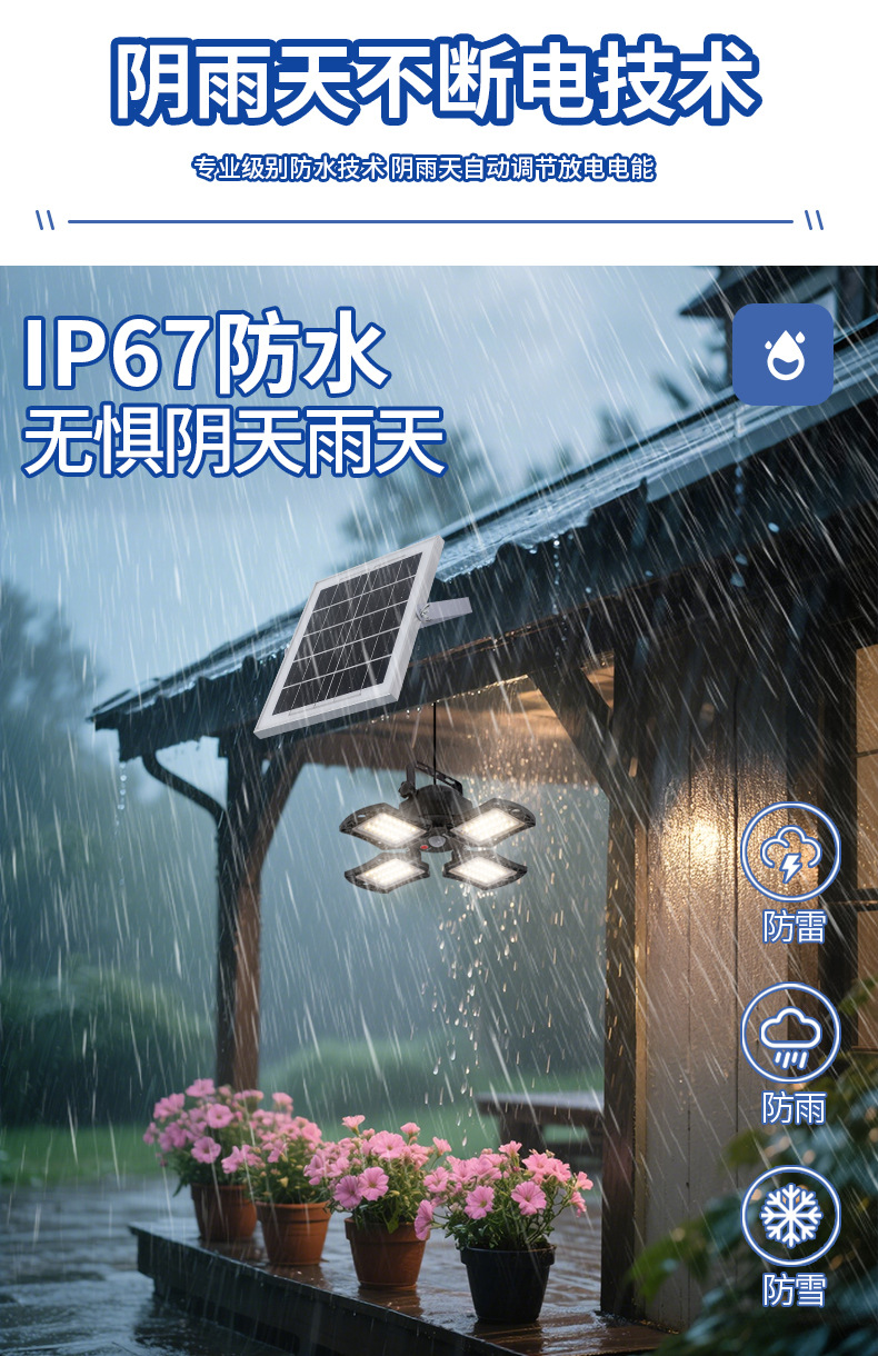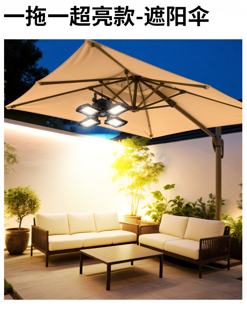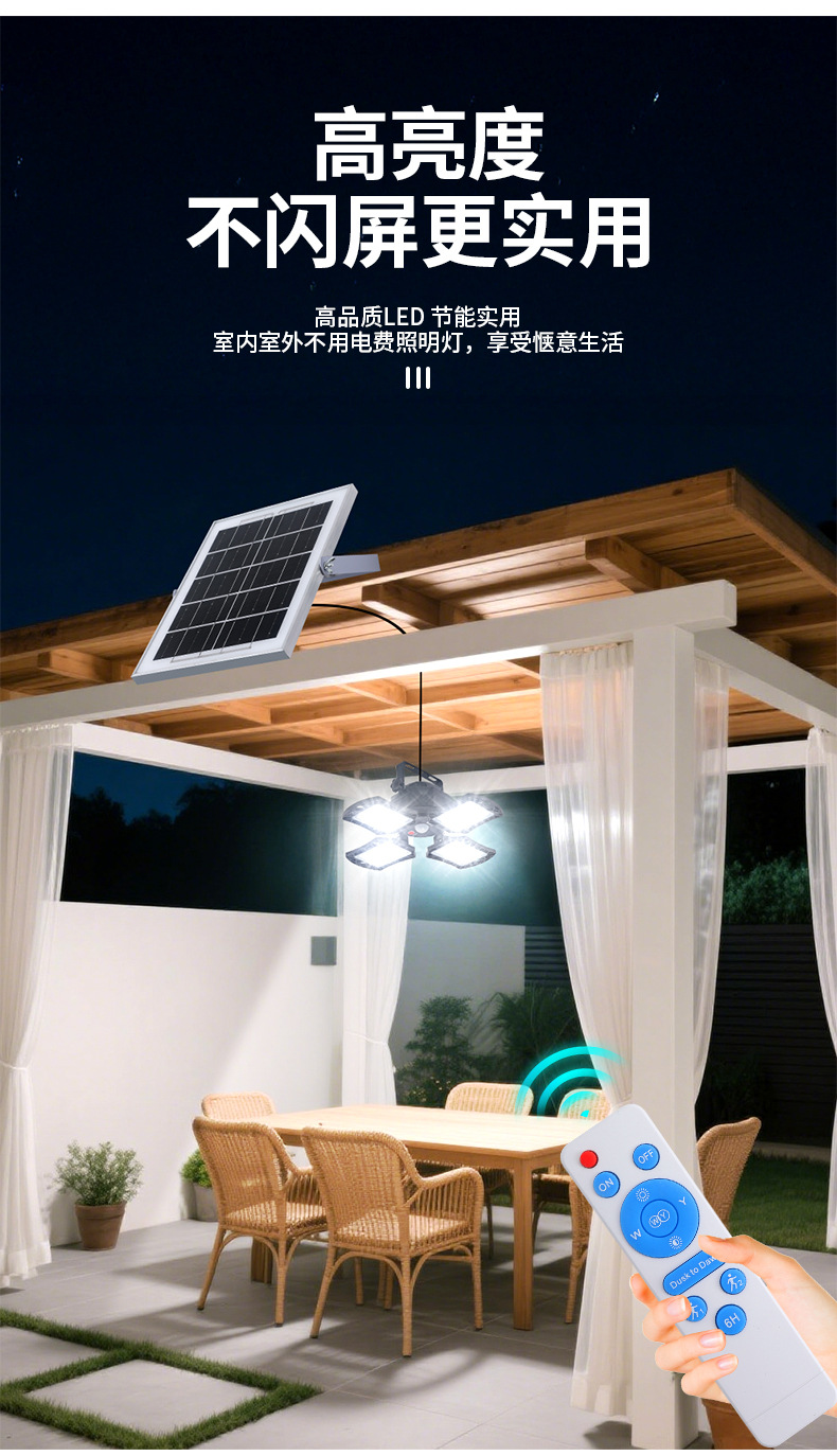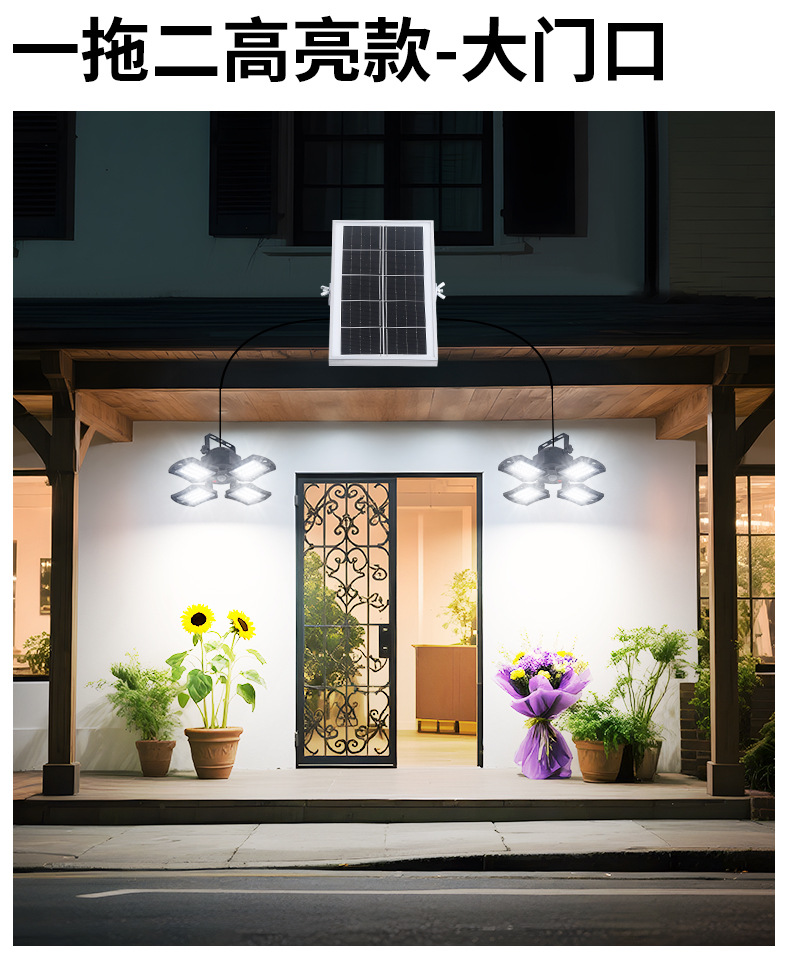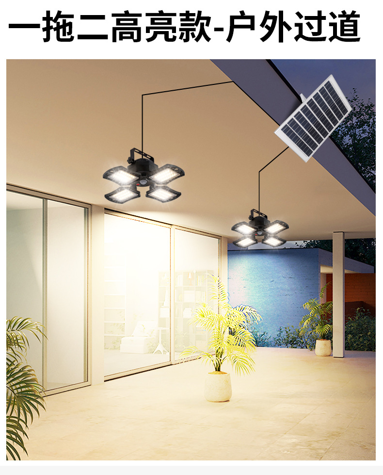 跨境户外折叠车库灯太阳能一拖二露营灯花园四叶庭院吊灯