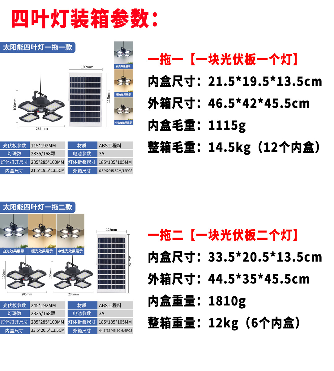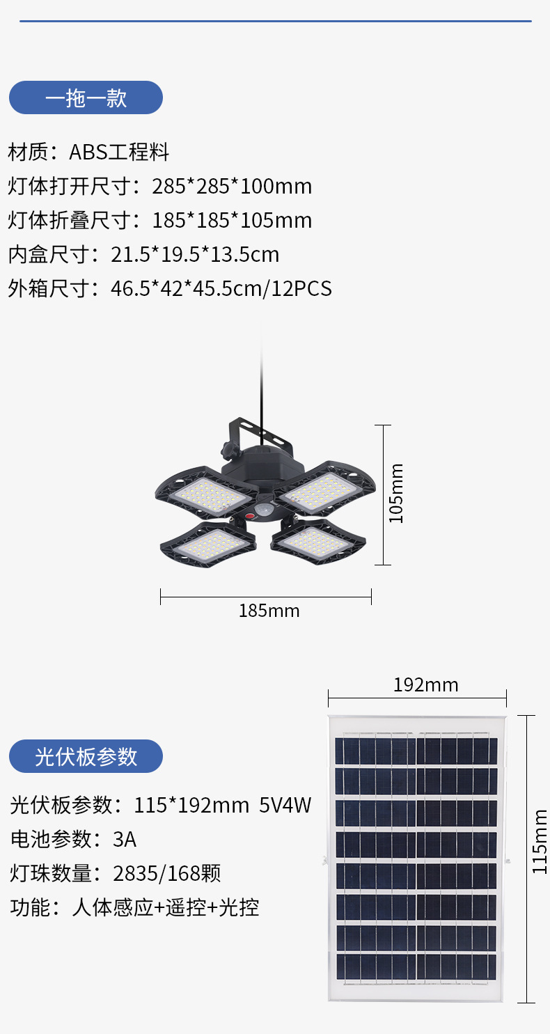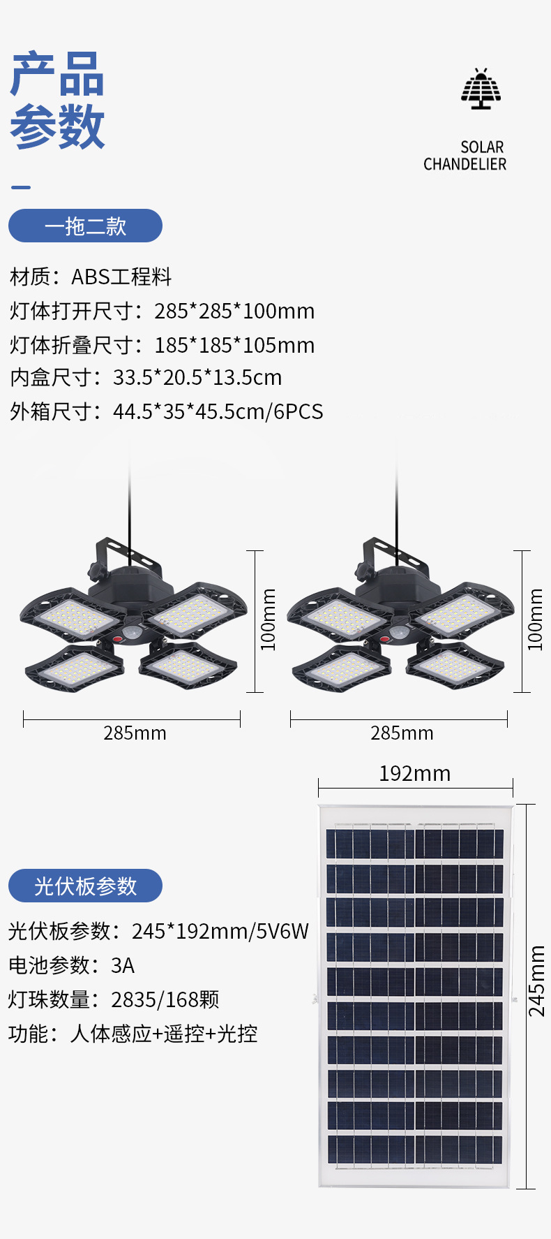 跨境户外折叠车库灯太阳能一拖二露营灯花园四叶庭院吊灯