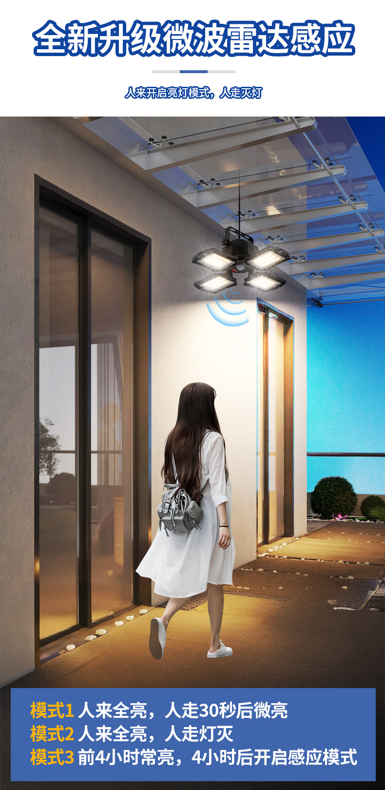 国境を越えた貿易ソーラーライト屋外家庭用LED四つ葉折りたたみシャンデリア人体誘導ガレージソーラーライト