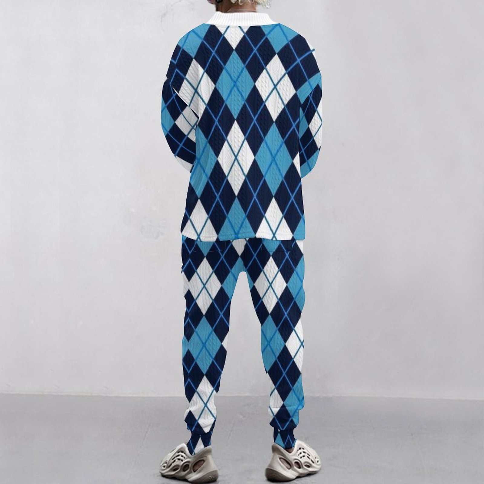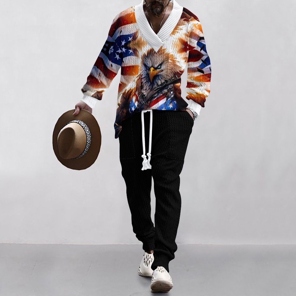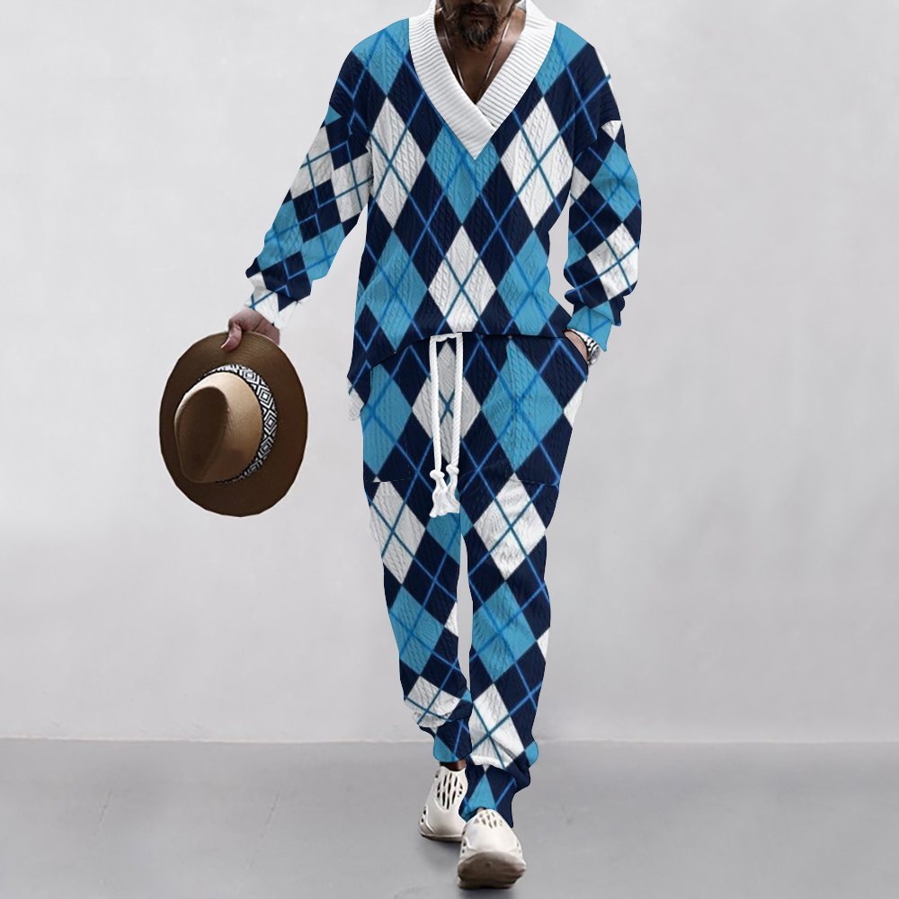 2025 秋クロスボーダーカジュアルジャカードセーターメンズ秋ルーズ長袖 Tシャツメンズ V ネックプルオーバージャカードトップ