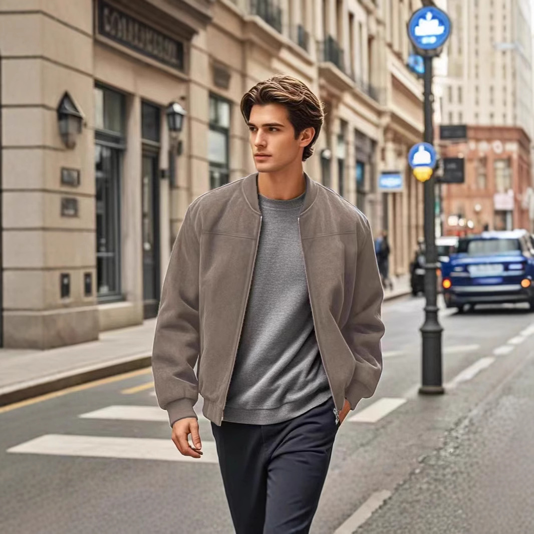秋冬メンズスエードスタンドカラージャケットメンズルーズレトロジッパーカーディガンコートトレンディなファッションメンズジャケット