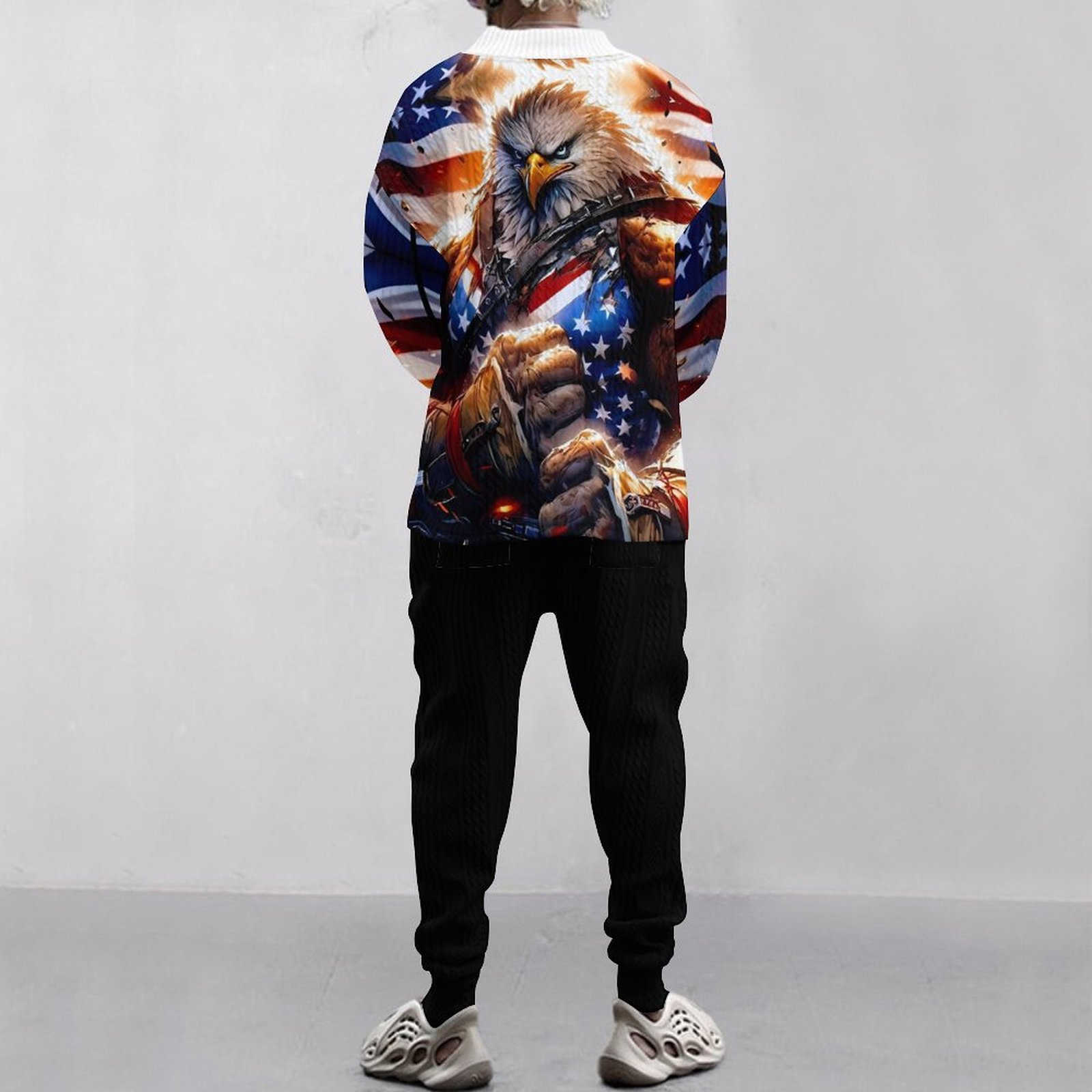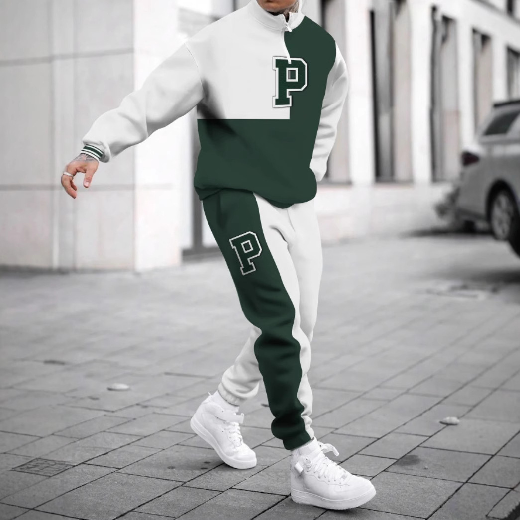 クロスボーダーラウンドネックテクノロジープリントカジュアルスポーツスーツメンズ長袖ズボンルーズメンズスウェットシャツとスウェットパンツの2点セット