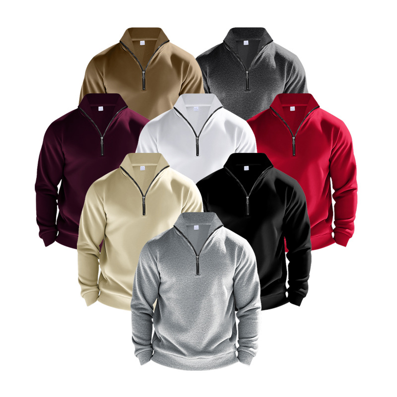 越境メンズウェア秋冬売れ筋独立系サイトメンズスウェットシャツ貿易カジュアルジッパー付きスタンドカラーフリースメンズスウェットシャツ