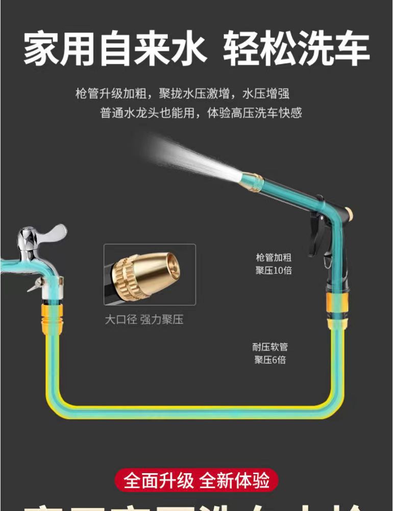 新しい高圧洗車水鉄砲、家庭用水道水洗車、花や地面の水やり、車の洗浄ツール、家庭用洗車ツール