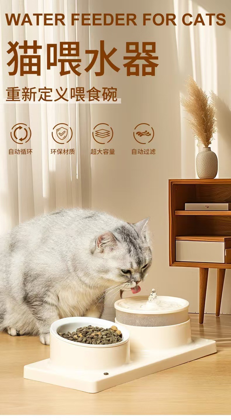 ペットの水と餌の統合フィーダー、犬と猫のユニバーサルボウル、ペットの食器、自動餌フィーダー、国境を越えた卸売工場、Tmall、淘宝網、JD.comと同じスタイル、TEMU、