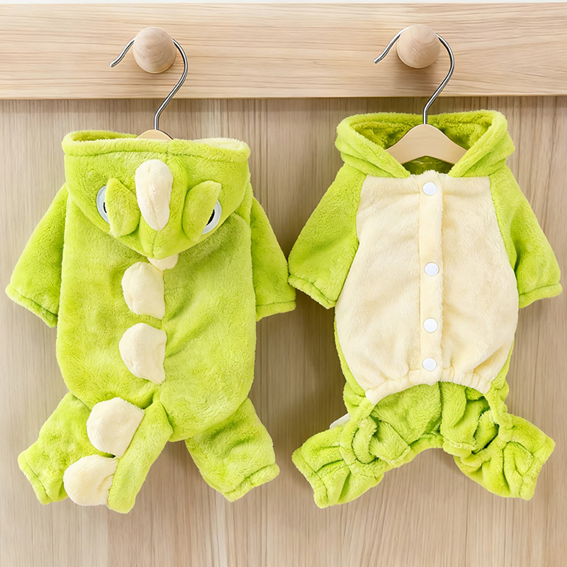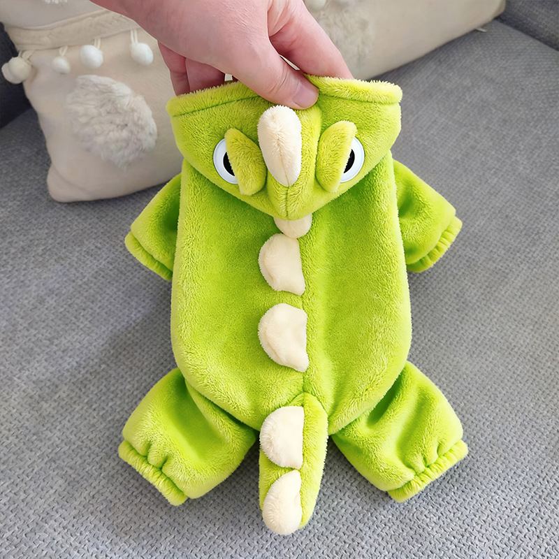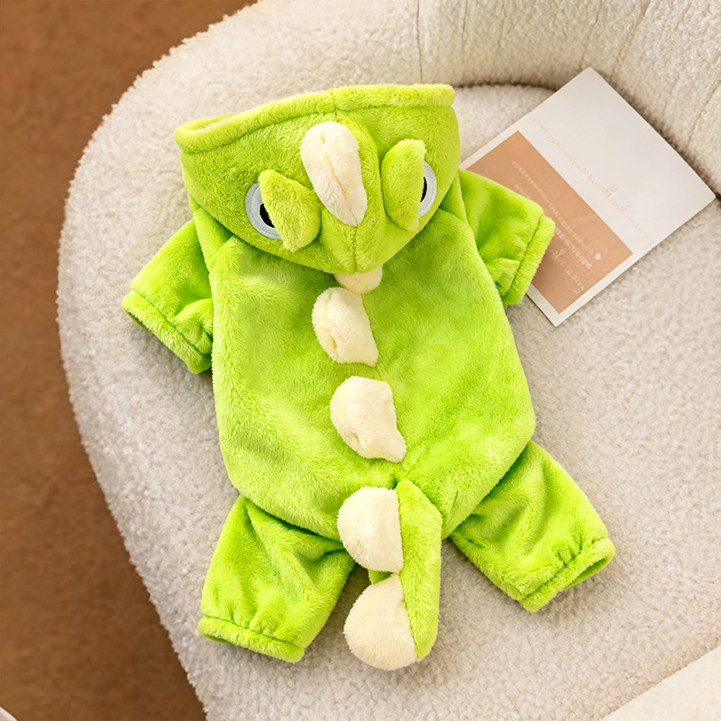 ペットの服はサンゴの毛の秋冬の恐竜の4足の犬に変身します。